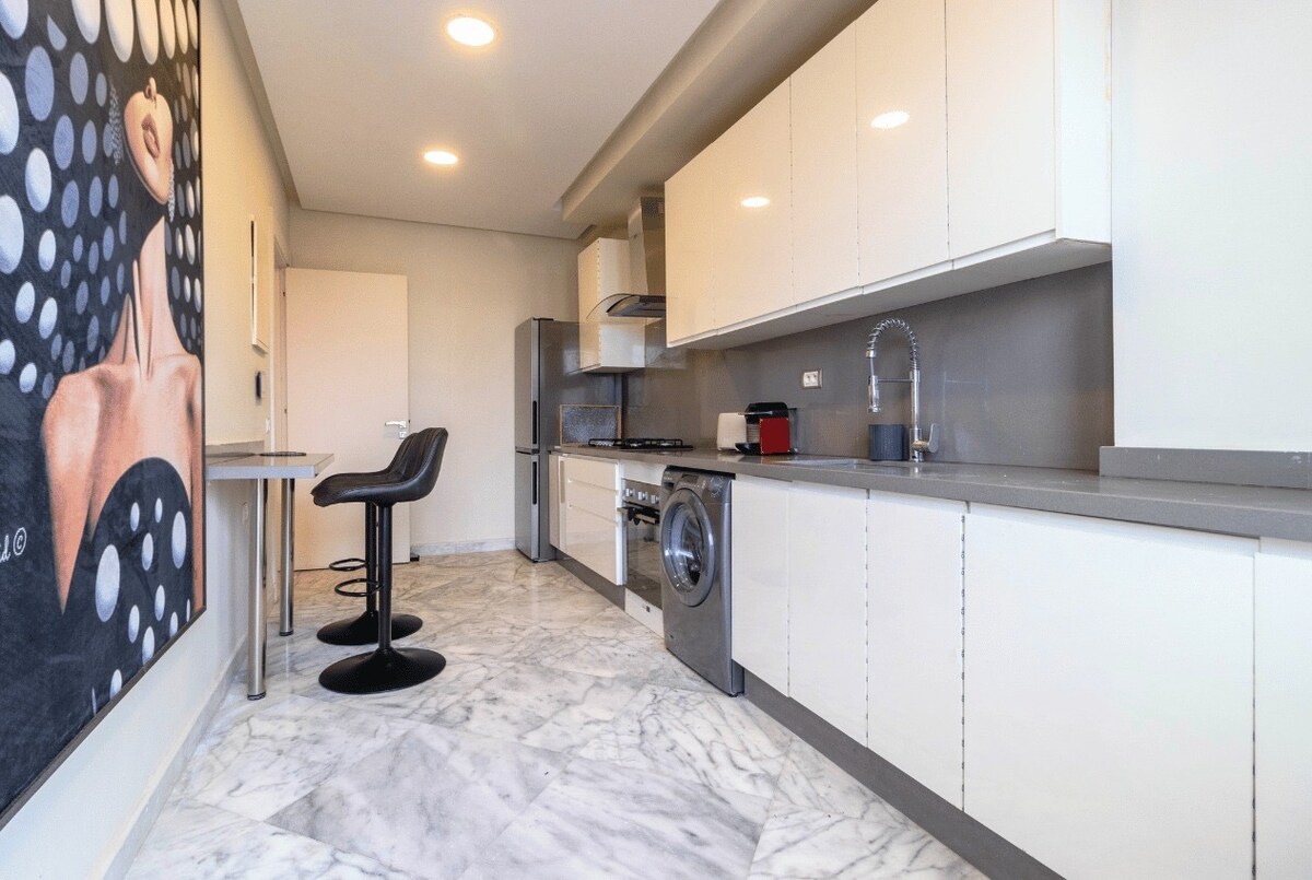 This unique place has a style all its own. This 60 m2 apartment with terrace and parking Located near the cliff in Casablanca. In a new residence built in 2020 near the sea and nearby shops Luxurious apartment fully equipped with high-tech. Great for families or business trips. The apartment includes luxurious furniture and is carefully decorated to make you feel at home. All hygiene rules are professionally respected