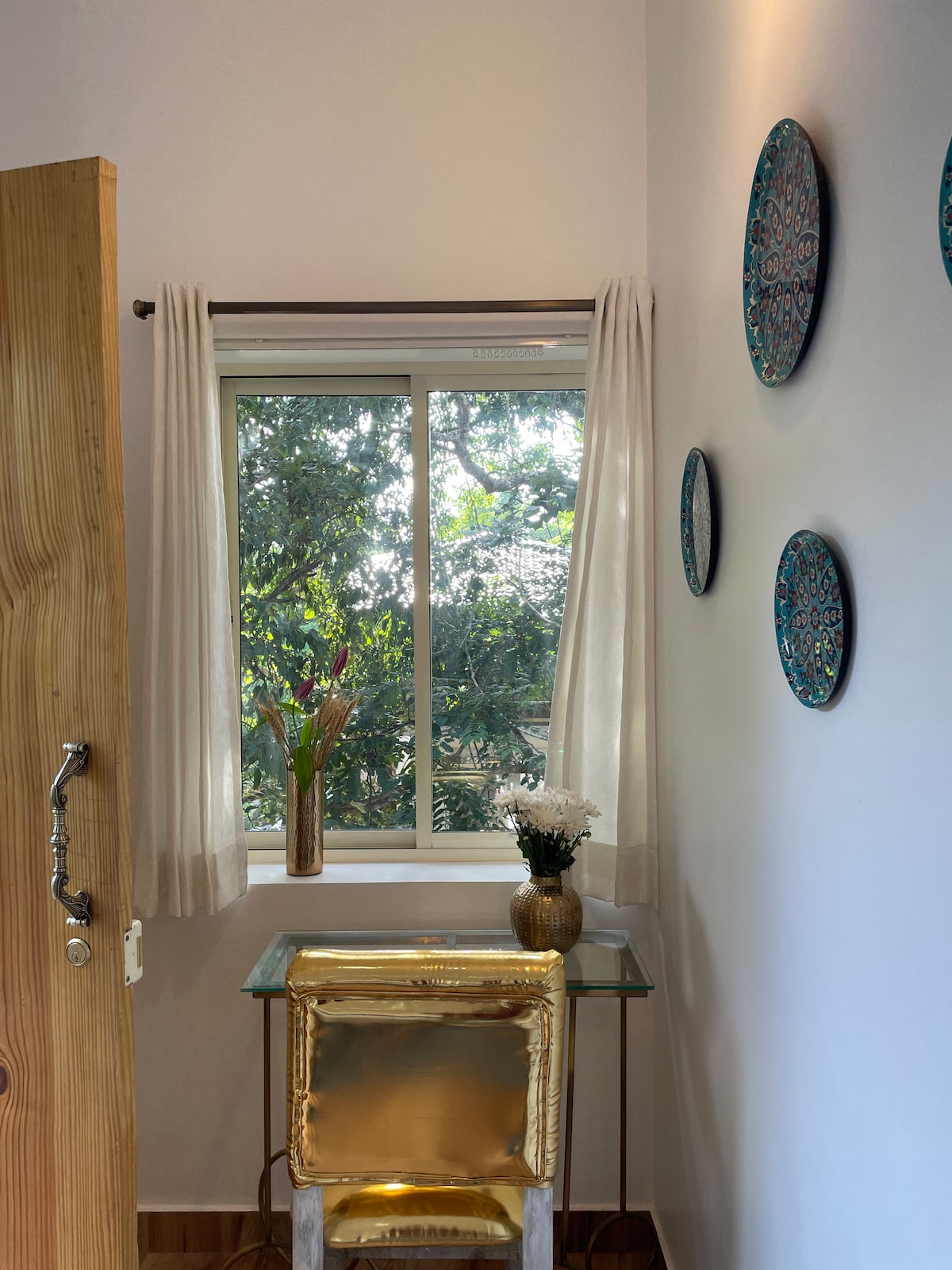 Sanitizing is important to us. We will not mingle with guests.Private gated green property with flowering and fruit bearing plants/ tree's as well as two lawn's and a sit out. Close to the main road yet far away from the bustling noise, restaurants and shops all within walking distance.A 5 minutes walk to the beach. Come relax.!The room is sanitized after every guest checks out,as per Airbnb norms. You are responsible for room house keeping,keep the room clean.Details of listing please read.