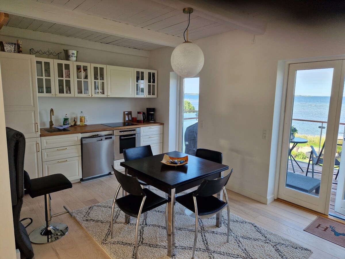 Views, views and more views. Relax in this unique home located 10 meters from the waterfront with the most beautiful sea view, marina and only 3 km to some of Denmark's most beautiful sandy beaches. The apartment is well furnished, very bright and allergy friendly. 4 box beds + sofa bed, bathroom, 2 toilets, spa and sauna. A few hundred meters to the forest, the artists' town, shopping in Nykøbing with restaurants, theater and cafe life. 4 km to the golf course. UNESCO Global Geopark Odsherred with diverse nature experiences.