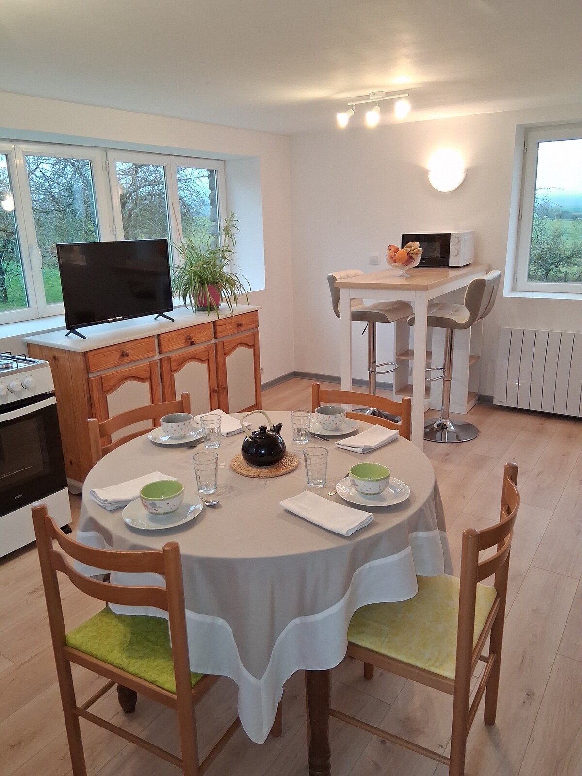 "La Maison d' à côté" , une petite maison de campagne, refaite à neuf, vous accueille pour un séjour de travail ou un séjour en famille. Située dans un village de 1200 habitants à 10 kms de Langres et à 1 km de la sortie d'autoroute LANGRES-NORD, croisement des autoroutes A5 et A31. Au centre du village, vous aurez accès aux commerces essentiels : Boulangerie, pharmacie, supermarché (ouvert tous les jours), Médecin, infirmières, garages, bar-restaurant, food-truck. Pas de souci de parking.