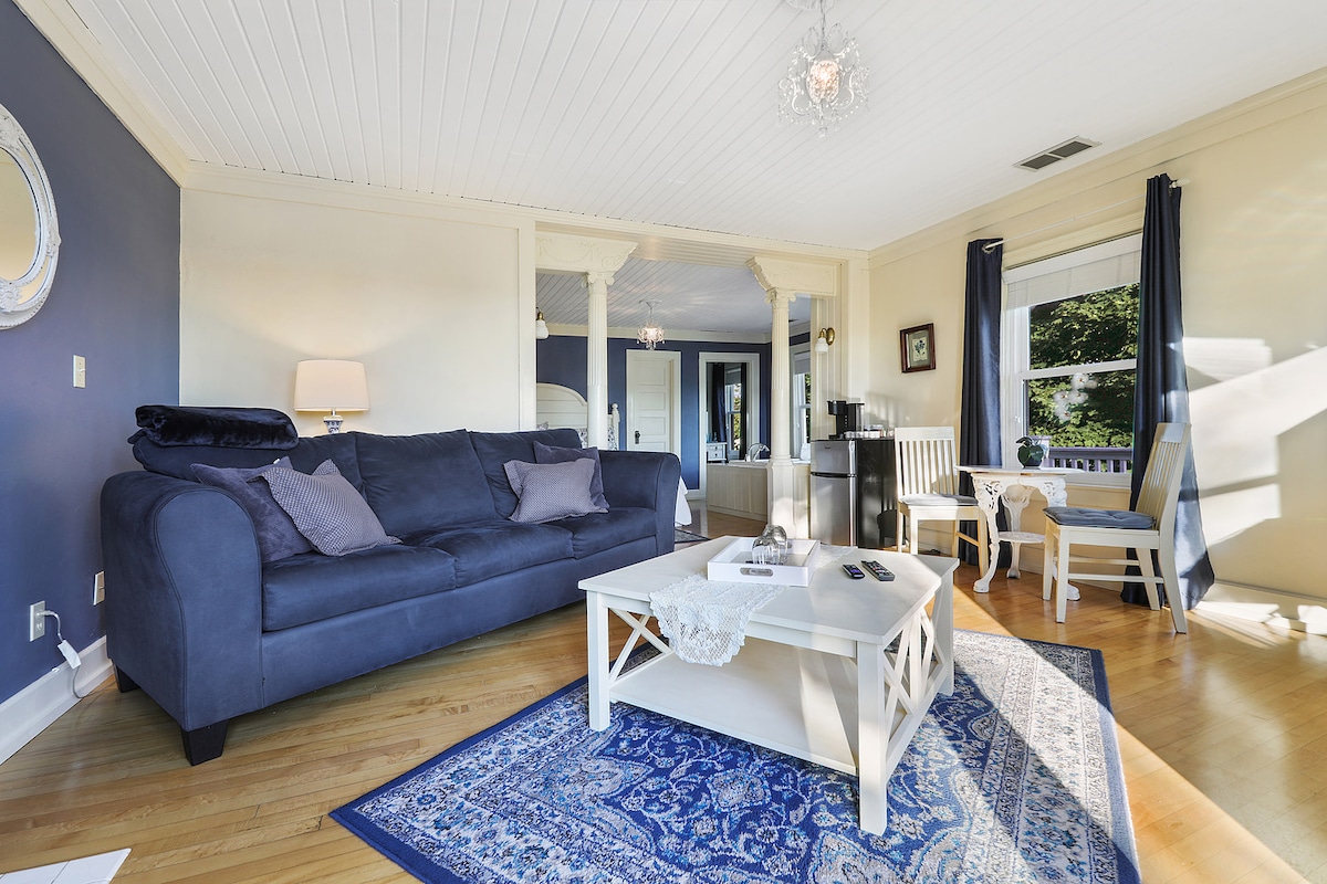 AB Lodging in downtown Put-in-Bay is a historic island hotelier's home, reimagined as cozy and economical suites. Right downtown yet tucked away for a quiet night’s rest. You’ll be steps away from the national monument, the beach and all the downtown action. We're a short walk from the Jet Express or right across from the Miller Boat Bus depot. The bedroom is small. It features individual air control for your comfort. Super comfy beds, too!