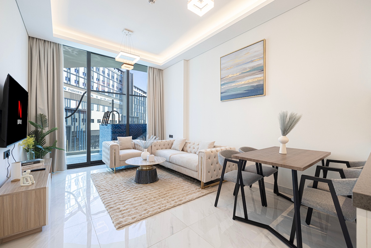 Welcome to your bright and modern 1-bedroom apartment in the heart of Jumeirah Village Circle – perfect for couples, solo travelers, business guests, and even small families. Thoughtfully furnished and filled with natural light, this home offers everything you need for a comfortable and relaxing stay. Whether you're visiting for a few days or planning a longer stay, you’ll feel right at home. Kick back and relax in this calm, stylish space.