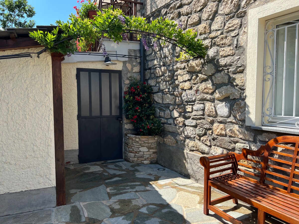 Kick back and relax in this oasis of calm. Immersed in the beautiful Maira Valley, a stone's throw from the most picturesque walks or mountain bike trips. The house is in a sunny position overlooking the mountains and extends over a single floor, with exclusive entrance via a few steps; from the terrace you can access an open space kitchen-living room, double bedroom and a bathroom with shower. Private parking, free Wi-Fi, laundry, bike storage area with secure E-bike charging.
