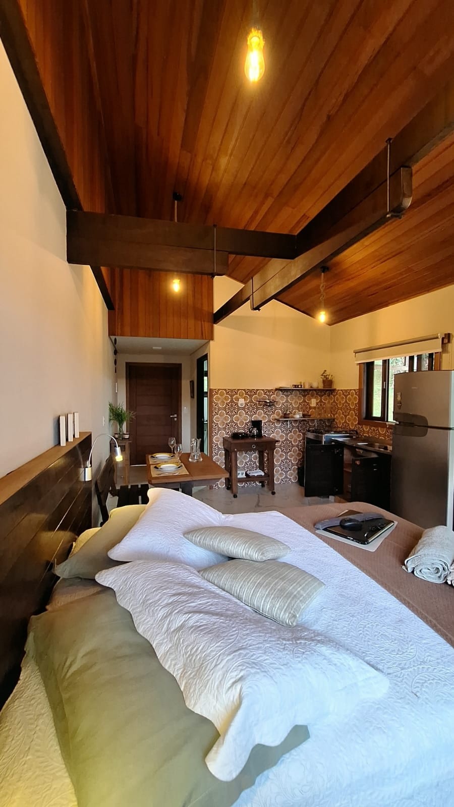 Cabana charmosa em Araquari SC, localizada no Itapocu, com fácil acesso à BR-101 e a apenas 5 km da Praia da Barra do Itapocu. Cozinha equipada com micro-ondas, liquidificador e utensílios básicos. Não há fogão, sendo indicado trazer refeições prontas apenas para aquecimento. Um espaço acolhedor em meio à natureza, ideal para descanso, pesca e momentos a dois. Perfeita para quem busca privacidade, contato com o verde e um cenário tranquilo à beira do lago.