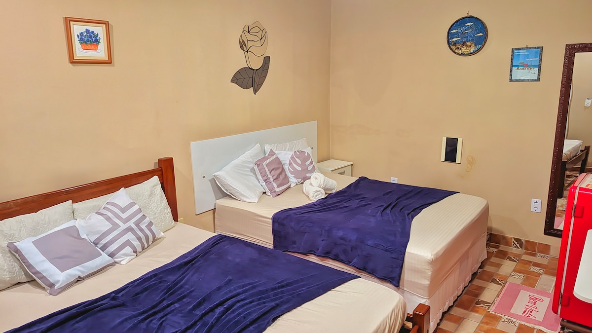This unique place has its own style. Bemiquer has the open house proposal so that there is integration and coexistence between guests and residents in a dynamic similar to a residence. The LOTUS suite consists of a double bed, fan, exclusive bathroom and a view of a beautiful garden. Shared areas: * Pool * Deck * Barbecue grill * Balcony with hammocks * Pool table Living room with TV Very green We offer: Wi-Fi Garage space to be agreed upon Simple breakfast for a fee