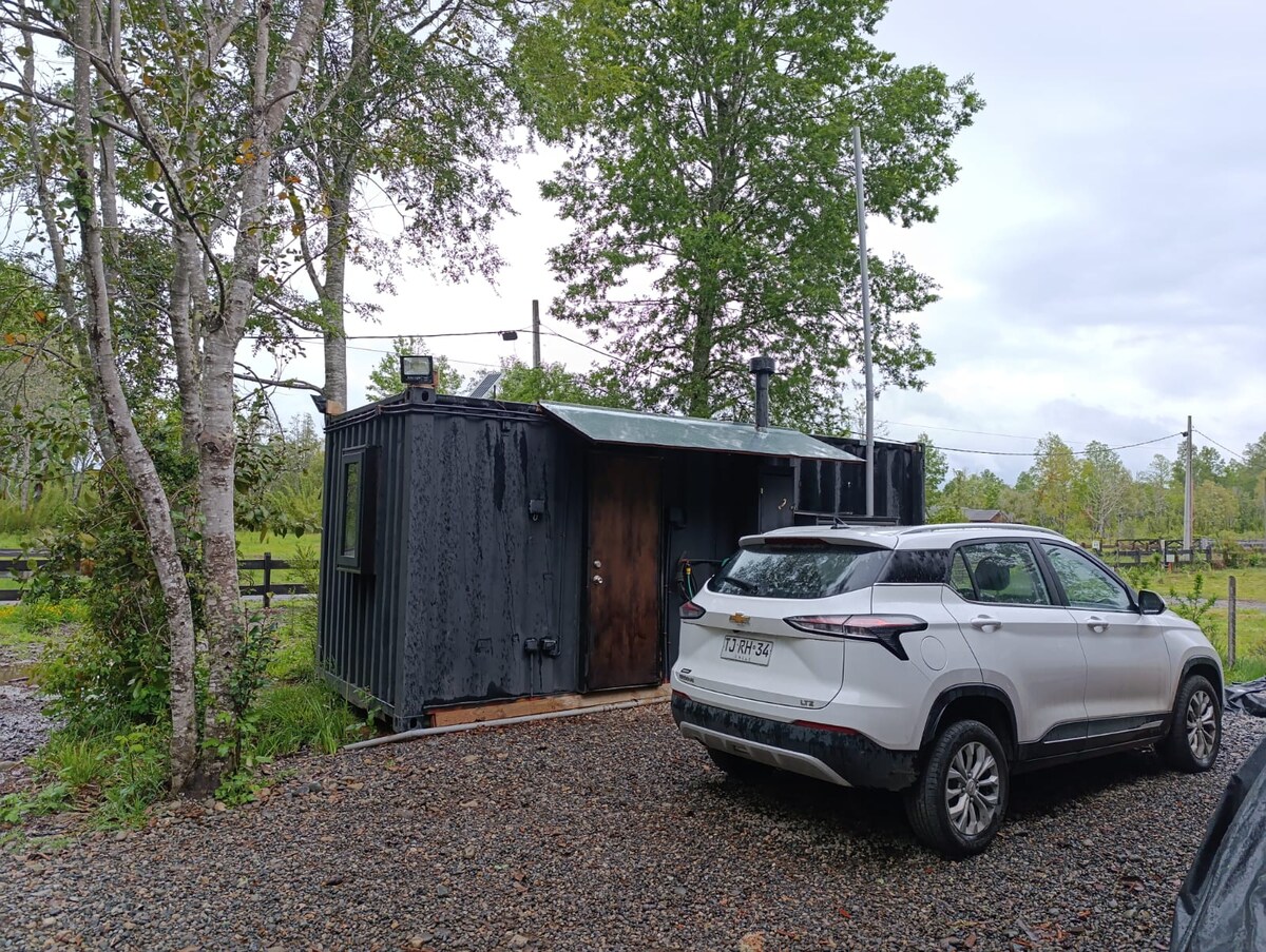 Reconnect with nature at this unforgettable escape. Enjoy a wonderful environment, a very quiet and safe place, 10 minutes from Villarrica, very close to rivers, lakes, forests, container within a 5000 square meter plot, surrounded by native trees, garden and wild animals. Private accommodation, with bathroom and small kitchen for exclusive use. Two full beds, small refrigerator and Doite kitchenette, kitchen equipped with dishes, cutlery, table, barbecue grill, WIFI