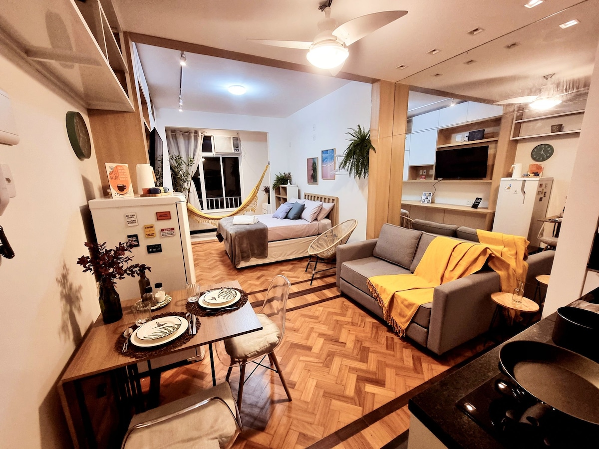 Loft with Wabi Sabi Design located in the best area of Rio de Janeiro: Posto 10 Ipanema. With a privileged address, between Ipanema beach and the Lagoa, and close to the best restaurants and entertainment in the area. The beach, the Lagoa, Leblon and the subway station are just two blocks away. Cozy space, fully renovated and equipped, great for relaxing and enjoying a bathtub with a view of the sky. For business travelers, we offer a Home Office space with 750MB internet.
