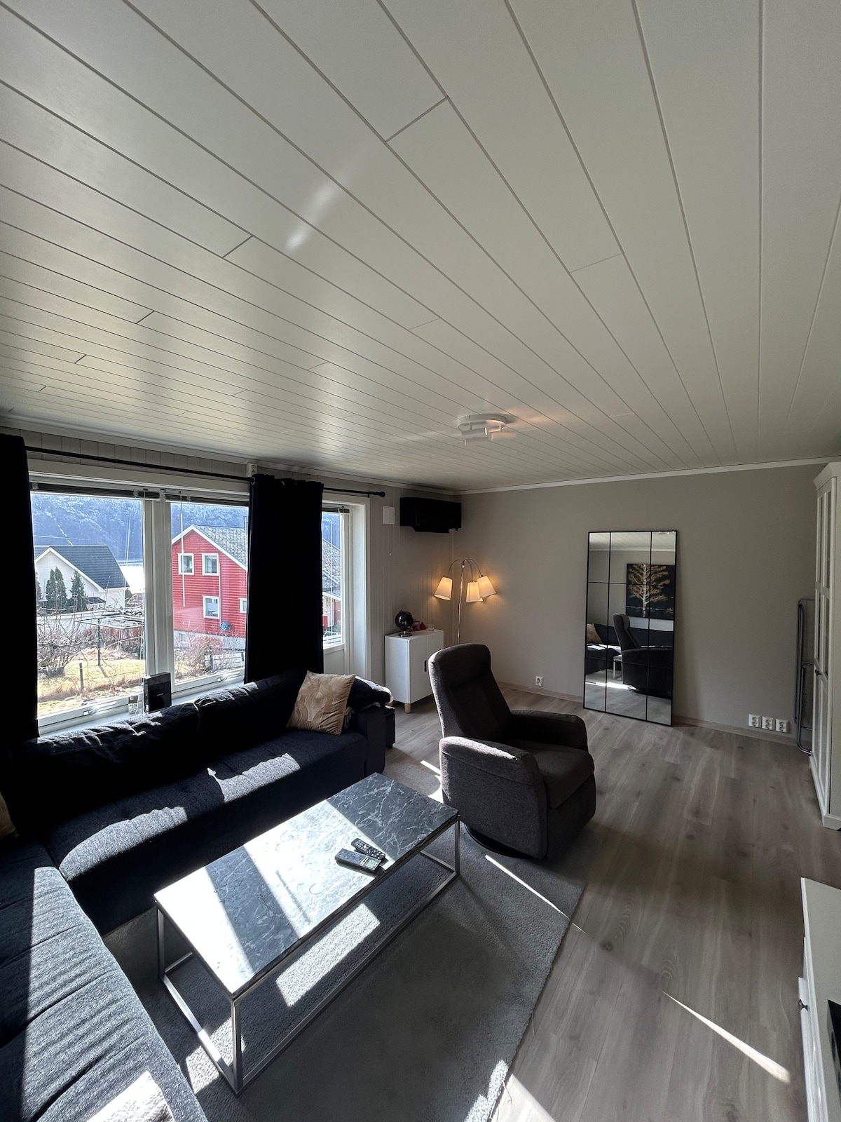 Enjoy a newly renovated house, located by one of the most beautiful sceneries of Norwegian fjord-landscapes. With a modern and fully updated interior that includes, among other things, a new kitchen, Air Conditioning / Heat Pump, floor heating and a flat screen TV, you get to enjoy the beautiful surroundings from a comfortable home. With beds for up to 10 people and parking for several cars it serves as a perfect base for exploring the diverse activities that this particular area has to offer.