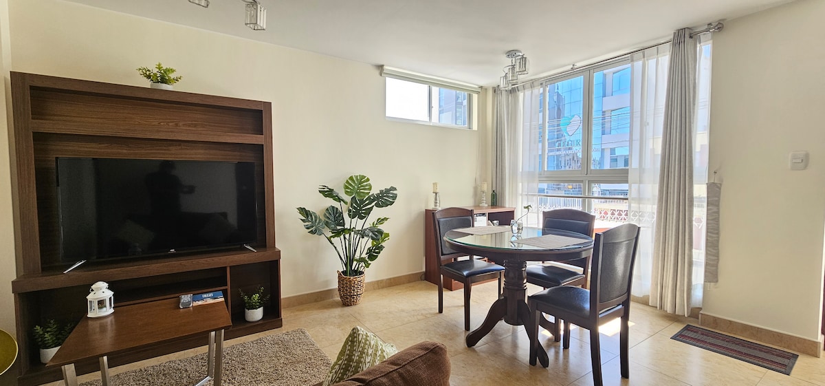 Cayma District Financial and Commercial Center Flexible check-in and check-out High-speed and stable Wi-Fi Private entrance, steps and ELEVATOR 2 Malls 1/2 and 2 blocks away Restaurant, spa in the same building Gyms and everything in the same area Safe area 15 min walk to the historic city center, 10 min by taxi Solar and electric hot water Kitchen NOT fully implemented only basic food preparation In front of the park HBO, Netflix streaming 1 block from the Ejercito Avenue bypass