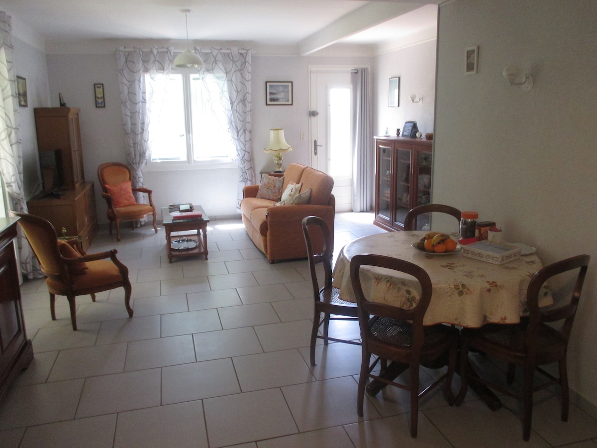 Beautiful guest room, without shared spaces. 60 euros per night, breakfast included, 10 euros per additional guest, breakfast included. You have at your disposal the living room with sofa bed for 2 people, 1 bedroom with double bed (sheets provided). Terrace and garden at your disposal. Independent entrance on the ground floor in villa. Located in a quiet residential area.