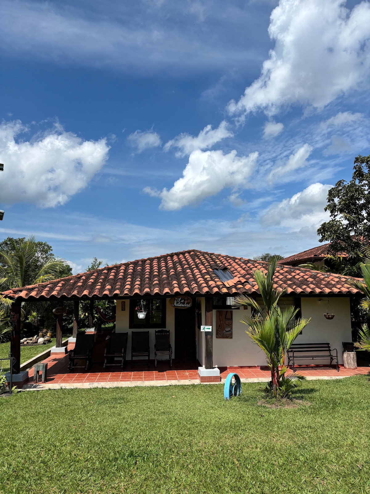 Un lugar mágico para disfrutar en Familia. Rodeado de naturaleza, cultivos de cacao, café y cítricos, esta maravillosa casa ofrece la perfecta mezcla del campo con la modernidad. Un lugar lleno de diferentes especies de aves y flores, donde se aprecia el paisaje del Quindio en todo su esplendor. Se encuentra ubicada en el lugar más privilegiado del departamento, debido a su cercanía con el aeropuerto, Club Campestre, zonas comerciales y sitios turísticos. Un lugar ideal para pasar en Familia.