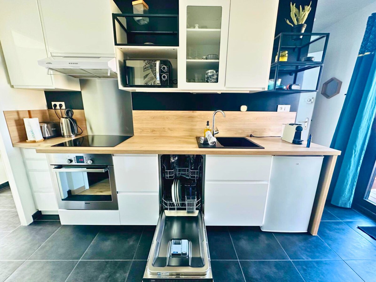 35 m² apartment on the ground floor with private garden, ideal for a peaceful stay near Bordeaux. Enjoy a quiet setting, perfect for relaxing after a day of discovery in Gironde. Fully equipped: connected TV, Wi-Fi, workspace, modern kitchen and separate bedroom with private shower room. Close to road access and tourist attractions. Ideal for business trips, getaways or Gironde weekends. Book your stay now!