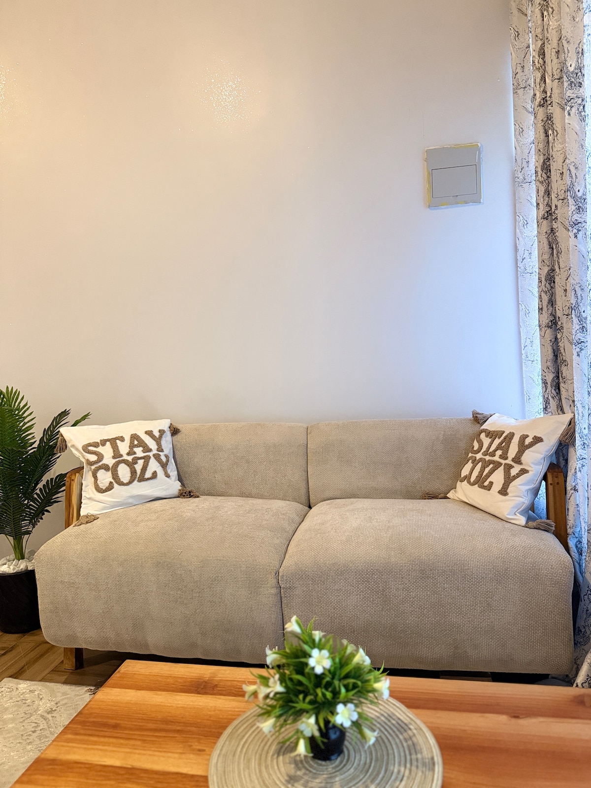 Welcome to your cozy boho-style studio retreat in Moshono. Relax in a sun-drenched boho studio, where cozy comfort, modern style, and natural light create the perfect retreat for couples, solo travelers, business guests, and long-stay expats. Enjoy a comfortable sleeping area, a cozy dedicated workspace, fast Wi-Fi and free secure parking. Breakfast essentials including bread, eggs, milk, yoghurt, and fresh apples are provided for a relaxed start to your day.