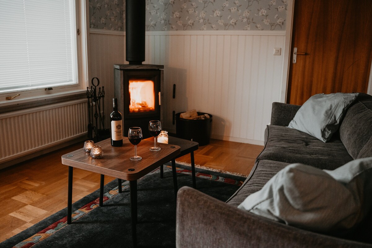 Welcome to your peaceful retreat! Our spacious downstairs suite in central Arvika is perfect for relaxing. Enjoy a generous living area, with spacious bedroom, private sauna, and refreshing shower. The suite is entirely private, though we share the entrance. Cozy up by the fireplace and use the fully equipped shared kitchen. Breakfast is available on request. Benefit from free parking and explore Arvika easily. Two bikes are available for local adventures. Book now for a serene stay!