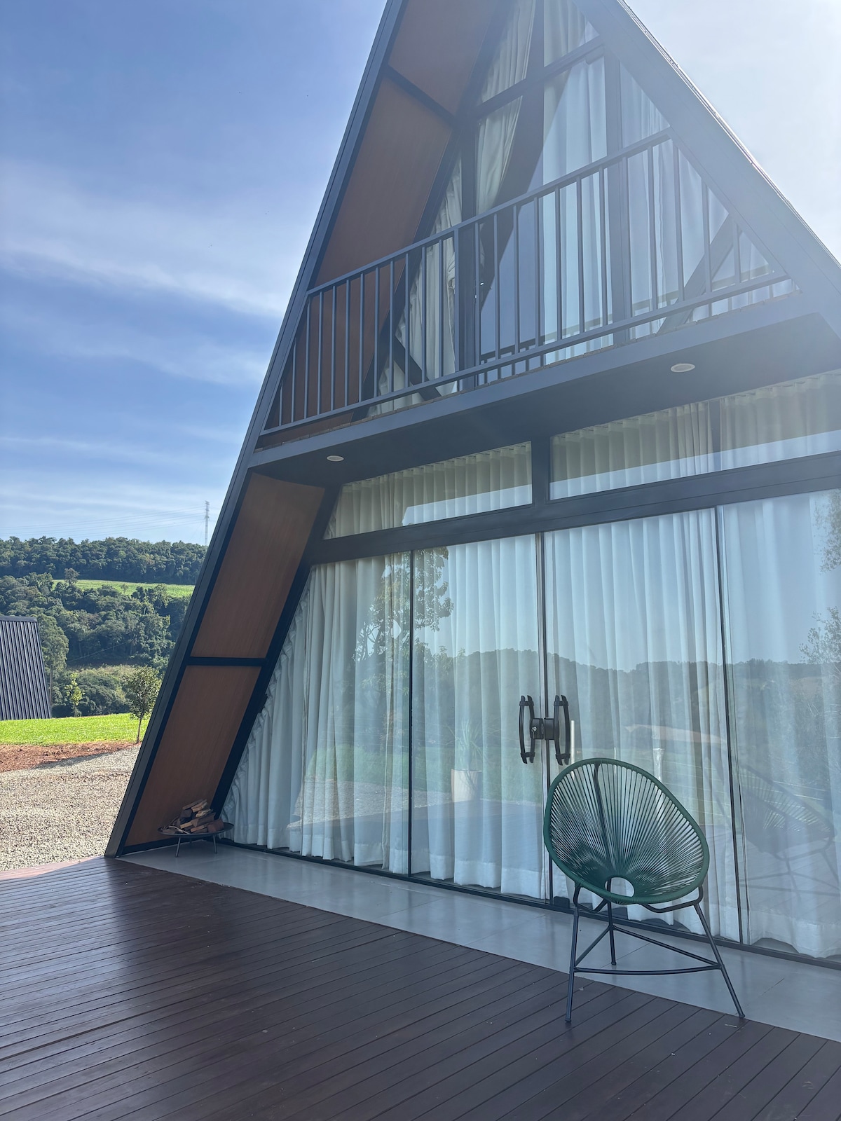 Complete chalet, cozy and surrounded by greenery. Ideal for couples, families or those looking for quiet days close to nature. • Room with a double bed. • Integrated living room with TV, sofa bed (accommodates 2 more people, see rates) and fireplace. • Full kitchen. • Wi-Fi. • Balcony with horizontal hammock. • Outdoor area with swing and floor fire. • Climate control. • Hot tub. • Bed and bath linens. For those seeking peace and practicality, without giving up comfort and convenience.