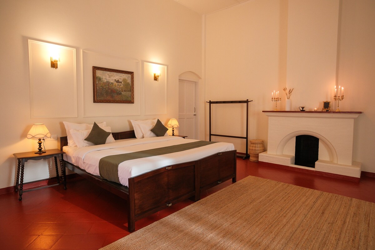 SOL is a spacious room inside Casa Do Leão. our restored 150-year-old Portuguese heritage home in Nerul, North Goa. This listing is for one private ensuite room within the home, not the entire property. Guests share the garden & outdoor spaces with others staying in the house. Featuring a king bed and an additional day bed, SOL accommodates up to three guests. Ideal for small families, friends, or travelers wanting extra space in a peaceful village setting close to Nth Goa’s beaches.