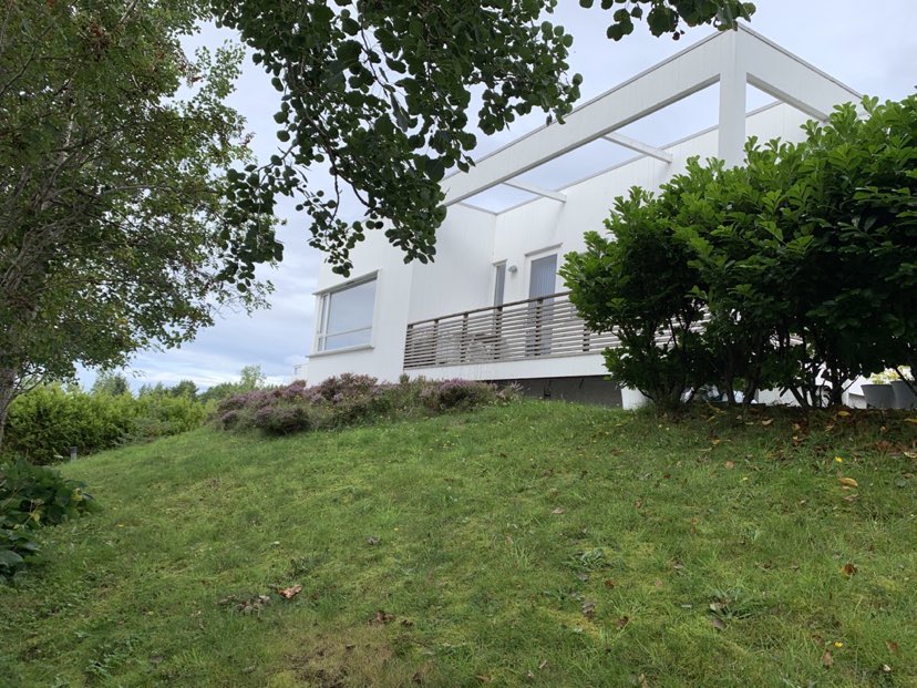 Modern cabin, Nordic design in a quiet residential area. Unique views of the sea and islands. The house has an open floor plan with kitchen and living room on one level. Parking space at the entrance. Terrace around the whole house and a cozy patio at the entrance. Perfect for morning coffee when the sun is shining. Nice hiking areas, good fishing spots and swimming areas in the area. Possibility of renting a boat nearby. 42 km (about 45 minutes) drive from Bergen. Only want to rent to guests with top Airbnb references.
