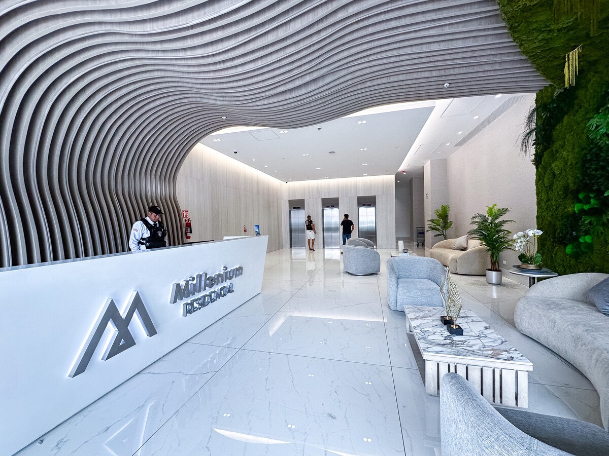 Luxurious suite in Torres Milenium. Elegant contemporary design with high-end finishes, wide windows and a great view of the city. Includes living room fully equipped kitchenette, master bedroom with walk-in closet and spa-like bathroom. Building with pool, gym, social areas and 24/7 security. Prime location close to malls, restaurants and main thoroughfares. Perfect for those looking for exclusivity, comfort and premium style in the heart of the city.