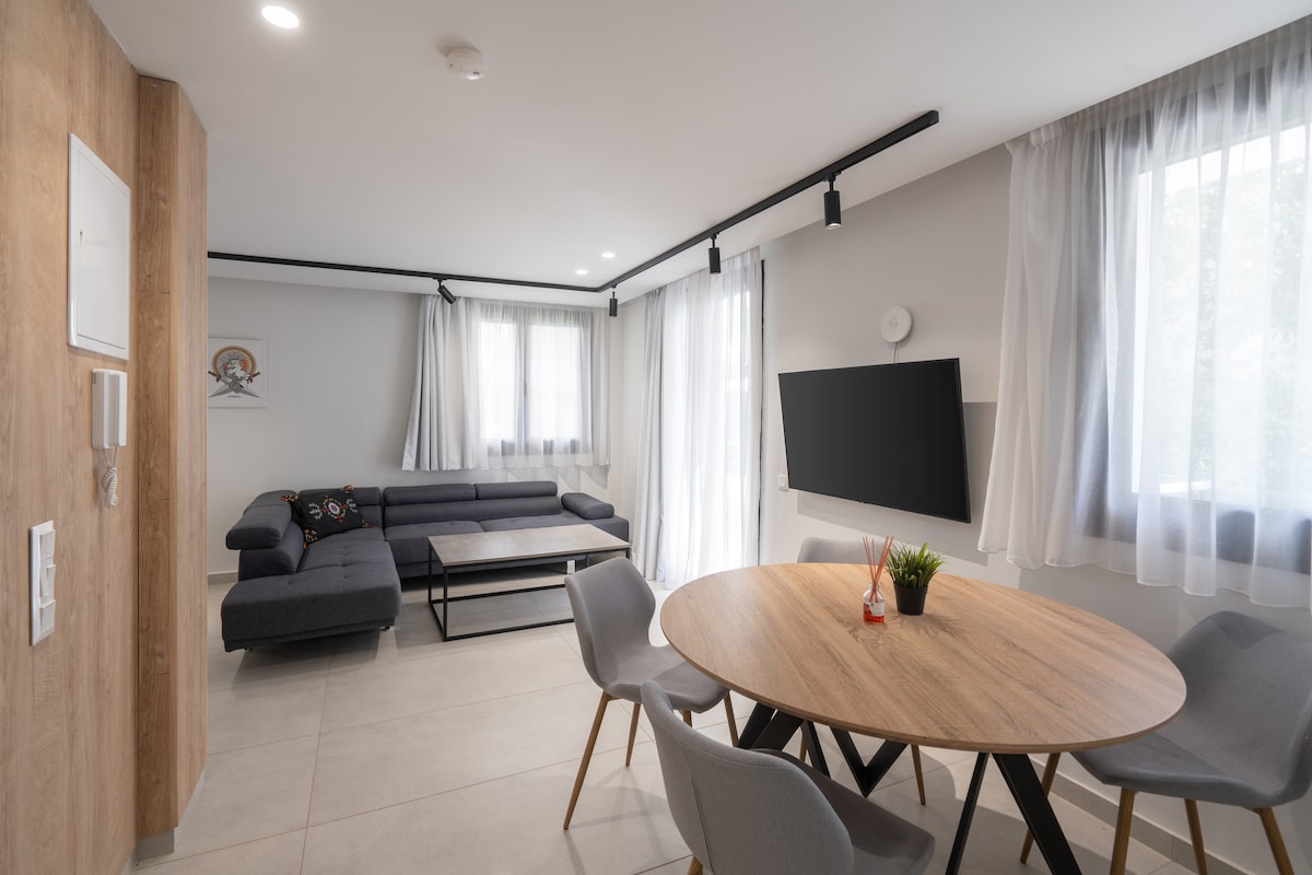 Welcome to this stylish and modern first-floor apartment, located in the heart of Kypseli just steps from shops, cafés and restaurants. It features one cozy room, a fully equipped kitchen for delicious meals, a comfortable dinning area and a smart TV. Ideal for couples, solo travelers, or business guests. The apartment is part of a boutique building with shared amenities including a gym, jacuzzi, sauna, and meeting room offering both comfort and a touch of luxury for your stay in Athens.