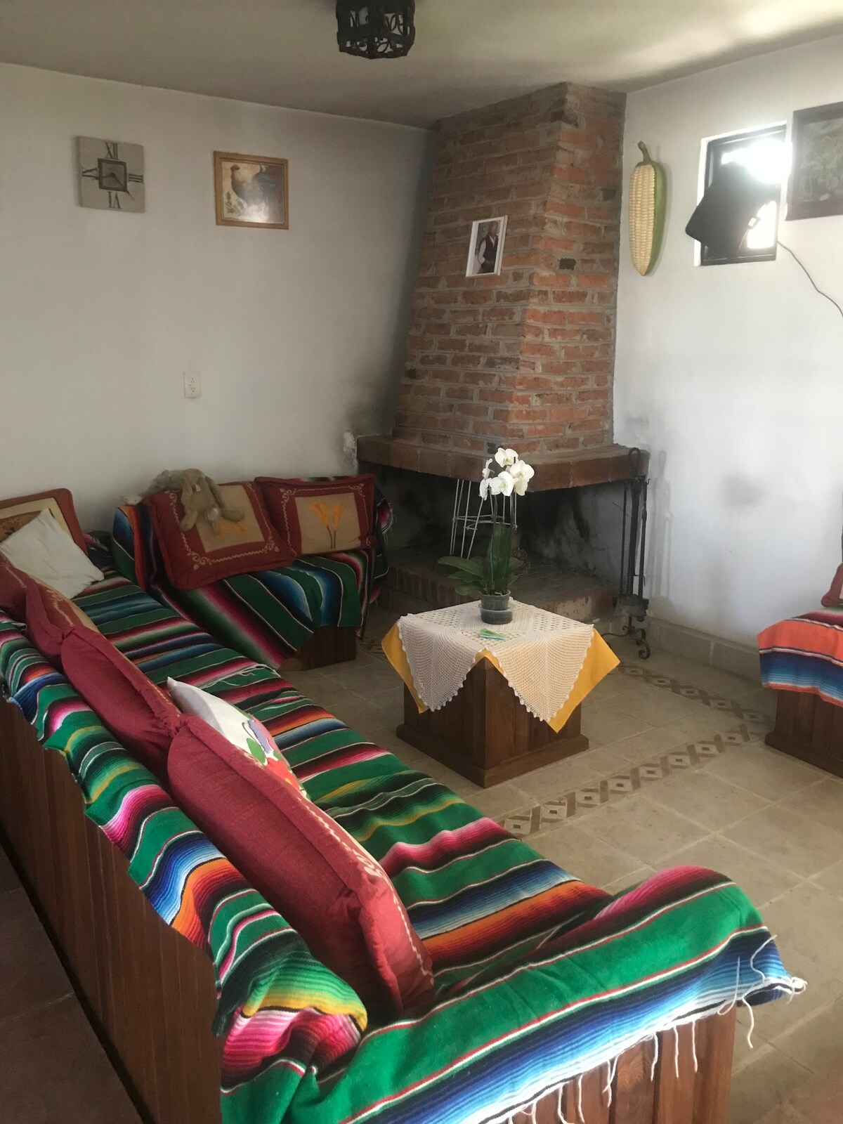 Terraza equipada con todo lo necesario para disfrutar de un fin de semana rodeado de naturaleza y tranquilidad. Cuenta con: - Cocineta - Comedor - Sala de estar - Chimenea - 3 habitaciones (1 habitación doble, 1 habitación king size y 1 habitación sencilla) - Terraza techada Cortesía: Una noche de fogata con s’mores y café de olla de cortesía. Capacidad: 8 personas máximo.