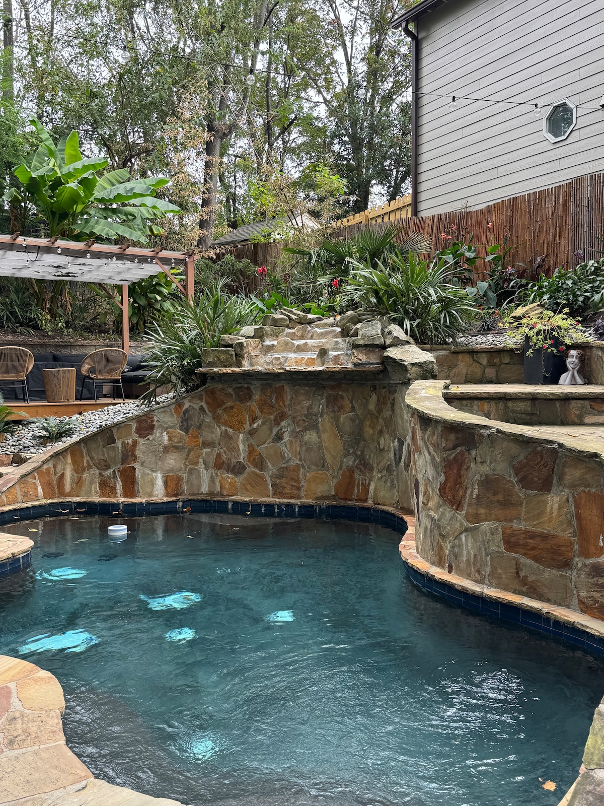 Welcome to a PINESTONE RETREATS property. We’ve created a space that blends comfort, style, and nature to foster a relaxing environment from the moment you walk in. Nestled on 2.5 acres of wooded land next to Kennesaw Mountain, this 4,500 Sqft retreat has everything you need to host a relaxing getaway. During your stay you can enjoy our huge saltwater pool, game room, sauna, and space for the whole family. There are great trails close by, and you may even see deer and flocks of wild turkeys.