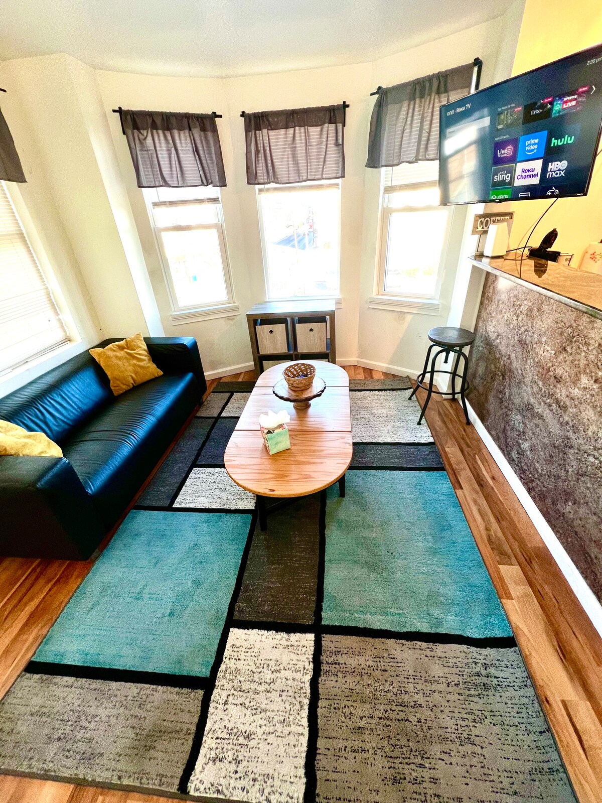 This updated, cozy ground floor 2 bedroom apartment is perfect for a small family or friends. There is a private entrance. An elementary school is on the same street. It's 5.5 blocks from Tropicana and 2.5 blocks to beach and Boardwalk. PLEASE NOTE: Ceilings - 6' 7" Bedrooms - 9'x10' Living room - 9' x10' Kitchen/dining - 9'x15' Street parking permit is provided. Cable tv with wifi. This space has a washer and dryer and is free to use.