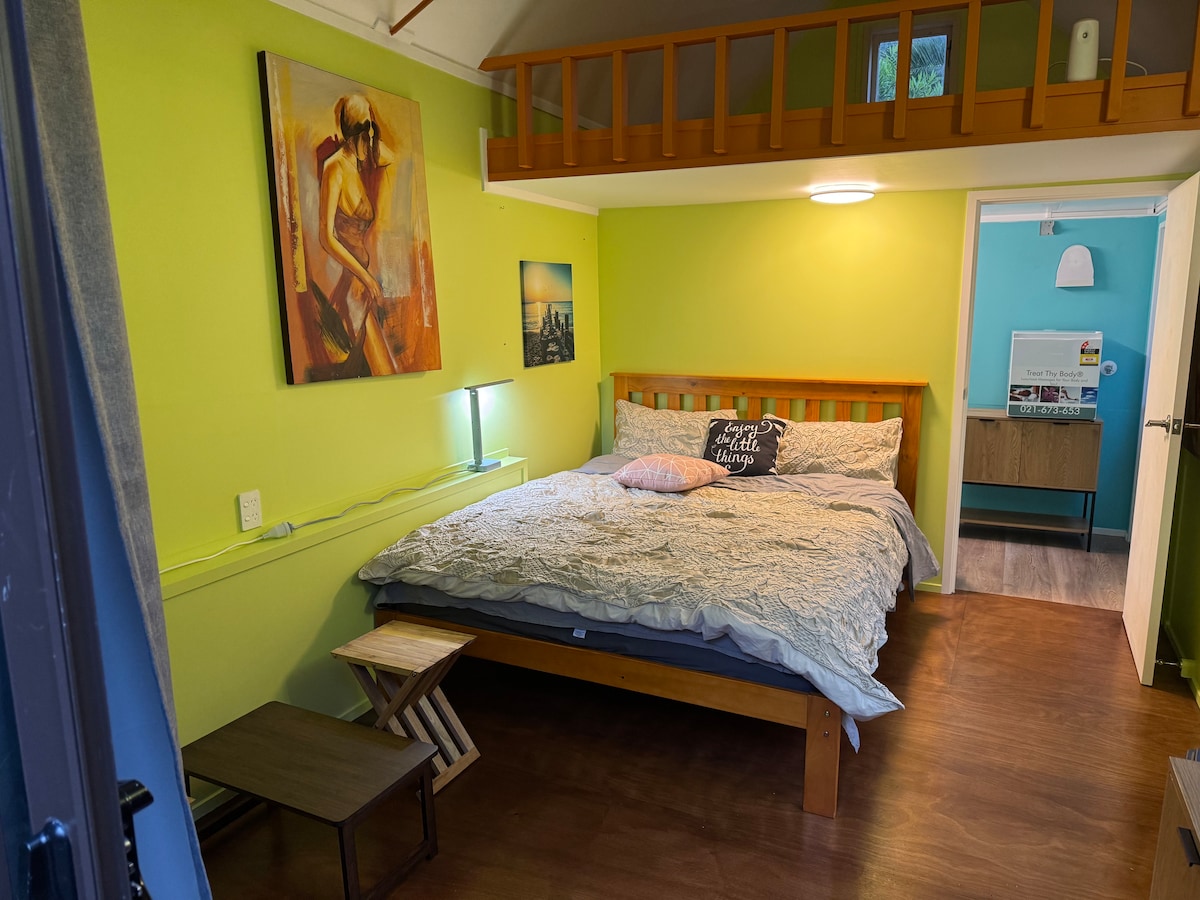 Welcome to our peaceful oasis near Howick Village. 5 mins walk to Mellons Bay beach. Enjoy your own private space in a modern and comfortable setting. Our place has a bedroom with a queen-sized bed, a separate bathroom (no bath), lovely deck, modern kitchen with a 5-seater sofa and small dining table. You will have your own fridge/freezer, tea and coffee, toaster, Freeview TV, wi-fi, all self-contained so all your needs are catered for. Take a break and unwind at this peaceful oasis.