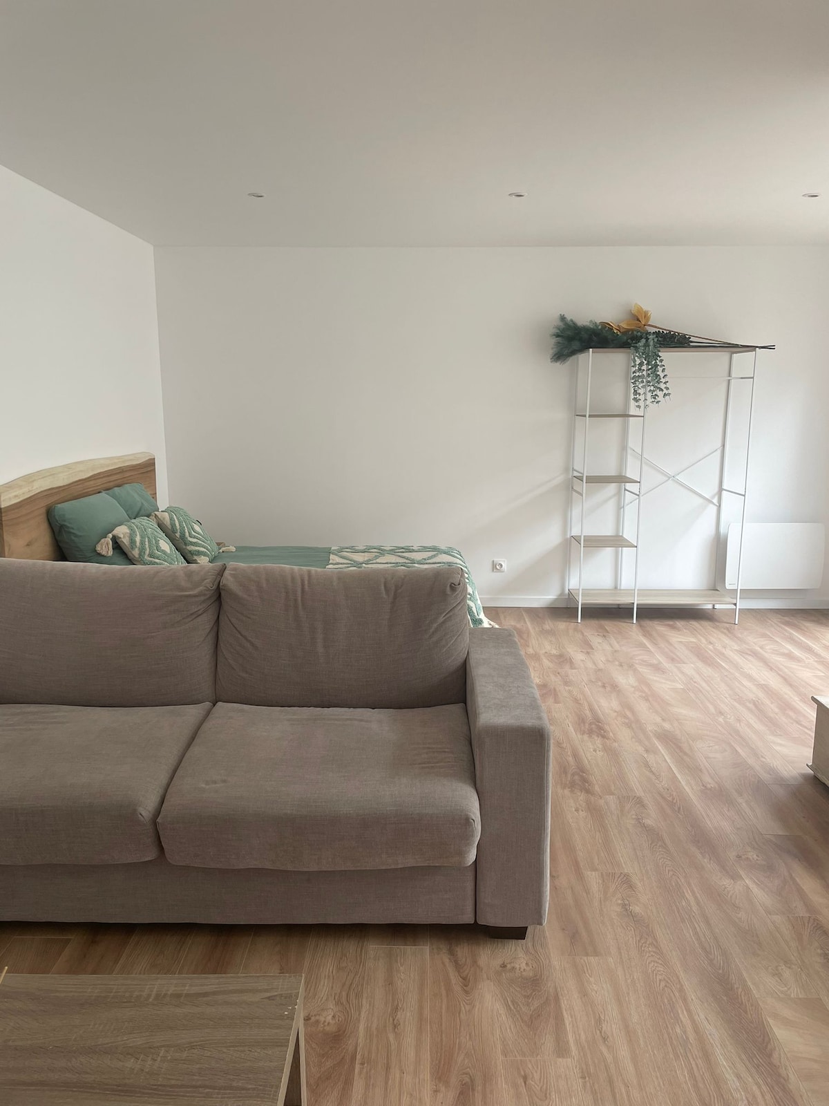 We welcome you to this recent studio, independent of our home (only the entrance of vehicles is common), carefully decorated. This one is composed of a night part with a bed of 180 cm that can be divided into 2 beds of 90 cm. The studio has a desk area, a kitchen equipped with fridge, microwave grill, coffee maker, kettle… The entrance to the garden is sloping. We have a dog at our home that we can lock up if needed.