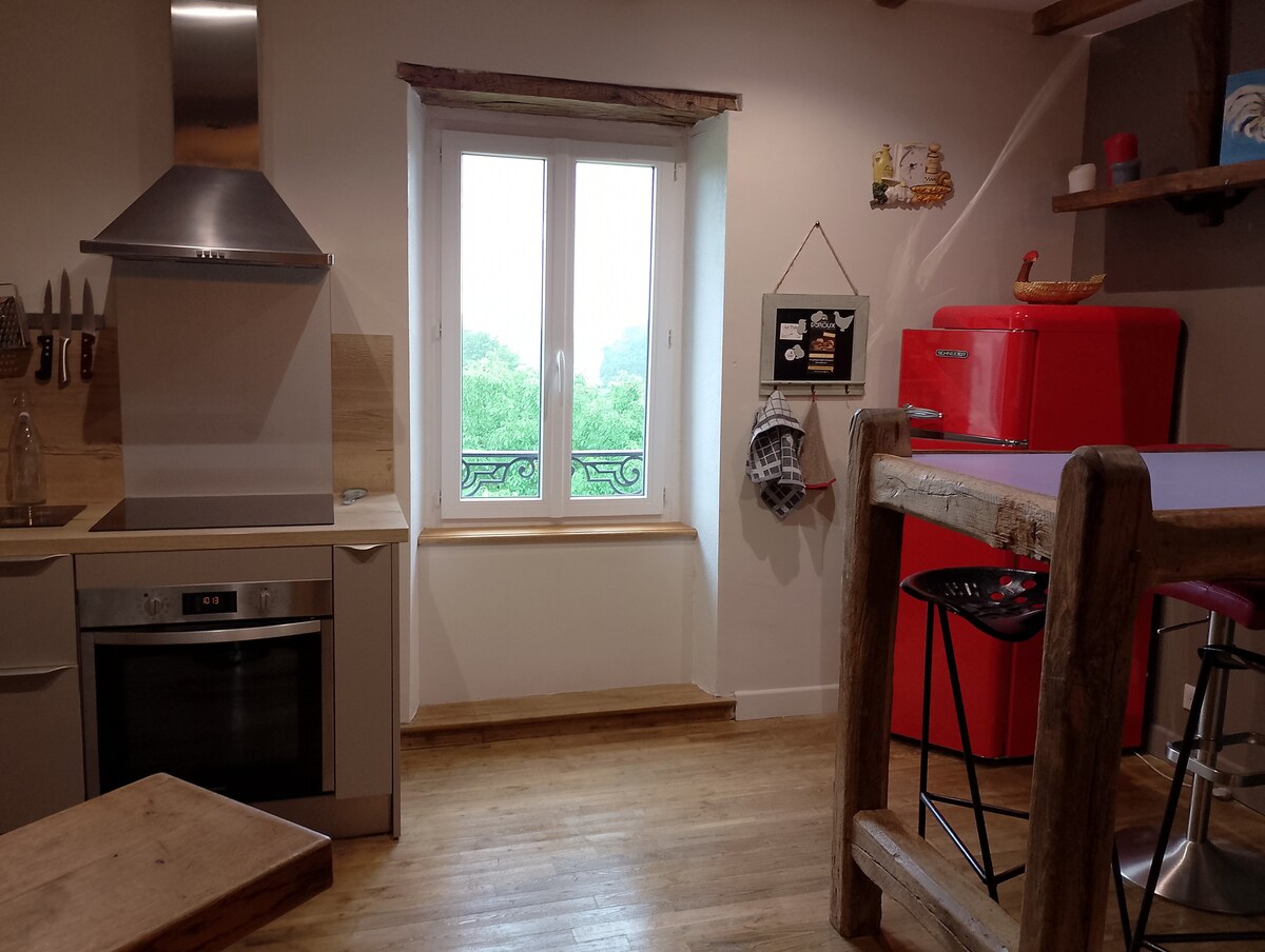 This spacious barn, tastefully renovated, will enchant you with its location in the heart of nature, in a preserved setting. The 28 m² terrace offers a unique panorama of the forest, you are lulled by the sound of the stream below. No TV here, but books. Every detail has been carefully thought out, everything has been carefully selected. This 112 m² accommodation, fully equipped, with 2 double bedrooms, a large living room with insert, a beautiful garden, is a place where time is suspended. Not overlooked.