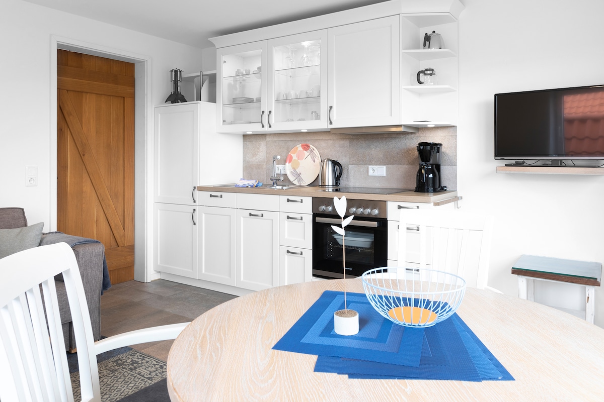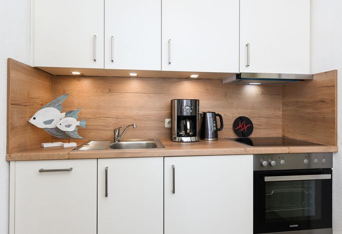 Bright, cozy and maritime 2-room apartment, 36sqm, with balcony, ground floor, Good facilities incl. WLAN Internet, Alexa and parking. Swimming pool and sauna use possible during opening hours. Fitness studio directly at the house. Kitchen with window, oven, microwave+grill, fridge with freezer, coffee maker, kettle and toaster. In this special accommodation all important points of contact are very close - so planning your stay will be very easy.