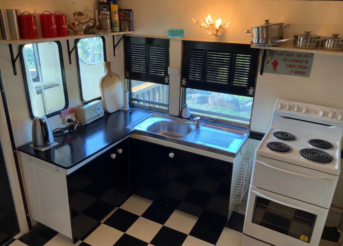 Unique accommodation in a rejuvenated vintage Red Rattler. Last Stop Ambledown Brook has been featured on Getaway and the Great Outdoors. Carriage 4388 is suitable for 2 people and is fully self contained (including kitchen). Just 20 minutes from Canberra City, surrounded by cool climate wineries and vineyards, this vintage railway carriage has come to rest in picturesque and peaceful, rural surroundings and so can you. A cooked breakfast is included in the tariff.