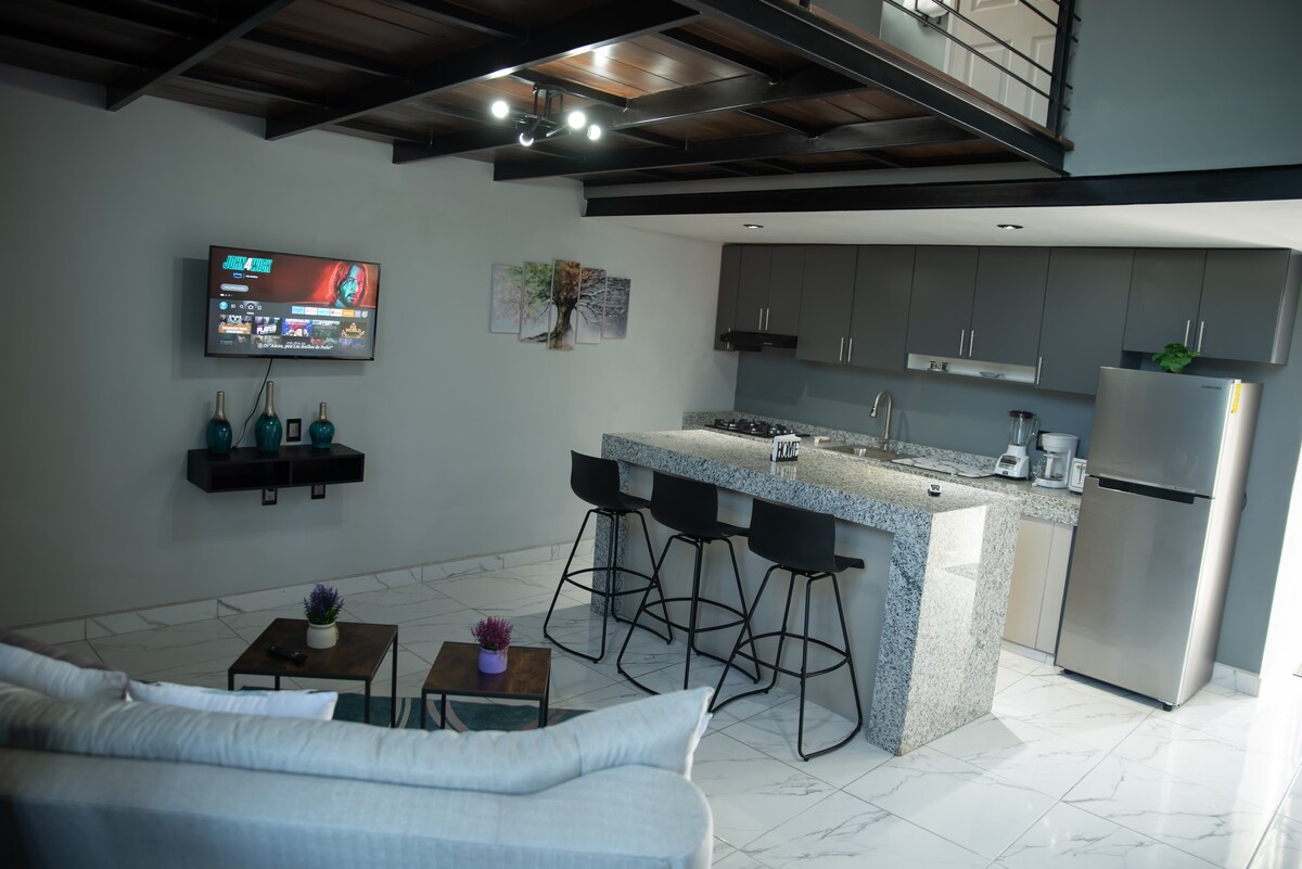 YOU WON'T FIND A PLACE TO STAY LIKE THIS IN THE REGION, IT'S EXCEPTIONAL. Read our reviews. Design loft & platforms with private ROOF TOP on 3rd level with barbecue and hammock, 2 BEDROOMS, LIVING ROOM with CURVED TV and Netflix & Amazon prime (all with AC), CLOSED GARAGE, KITCHEN and DINING ROOM and WASHING/DRYING fully equipped and others… you can only have a great time! By the way: Starlink, AUTOMATIC ACCESS, EXCELLENT LOCATION near the center and recreational walkway, Oxxo, supermarkets, local shops