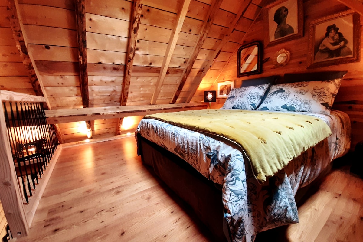 Unconventional accommodation in a green setting. You will hear the sound of birds and the song of the stream for a guaranteed rest with no other noises than those of nature. A romantic getaway as well for a cozy evening by the stove in winter or on a sunny terrace in summer. The rustic and minimalist aspects are also highlighted: dry toilets, reduced surfaces and layouts but executed with taste and simplicity.