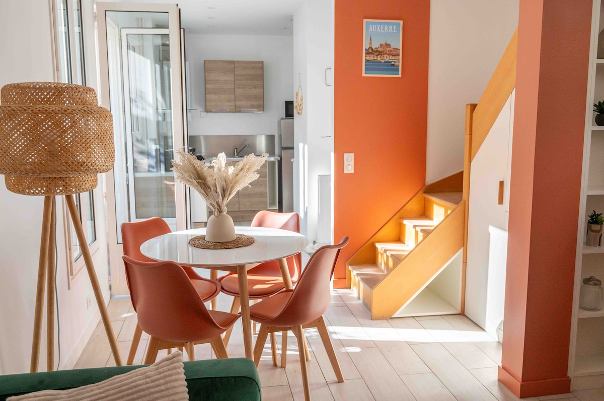 Welcome to "la buena suerte", a beautiful apartment just renovated in our beautiful medieval city of Auxerre! A peaceful setting in the heart of the historic center, 2 steps from all monuments and amenities. Between your Burgundian adventures in Auxerre or Chablis, you can relax on the sunny terrace, in the bathtub or simply on the sofa to enjoy Canal+ and all the services at your disposal. Ground-level access but a few steps.
