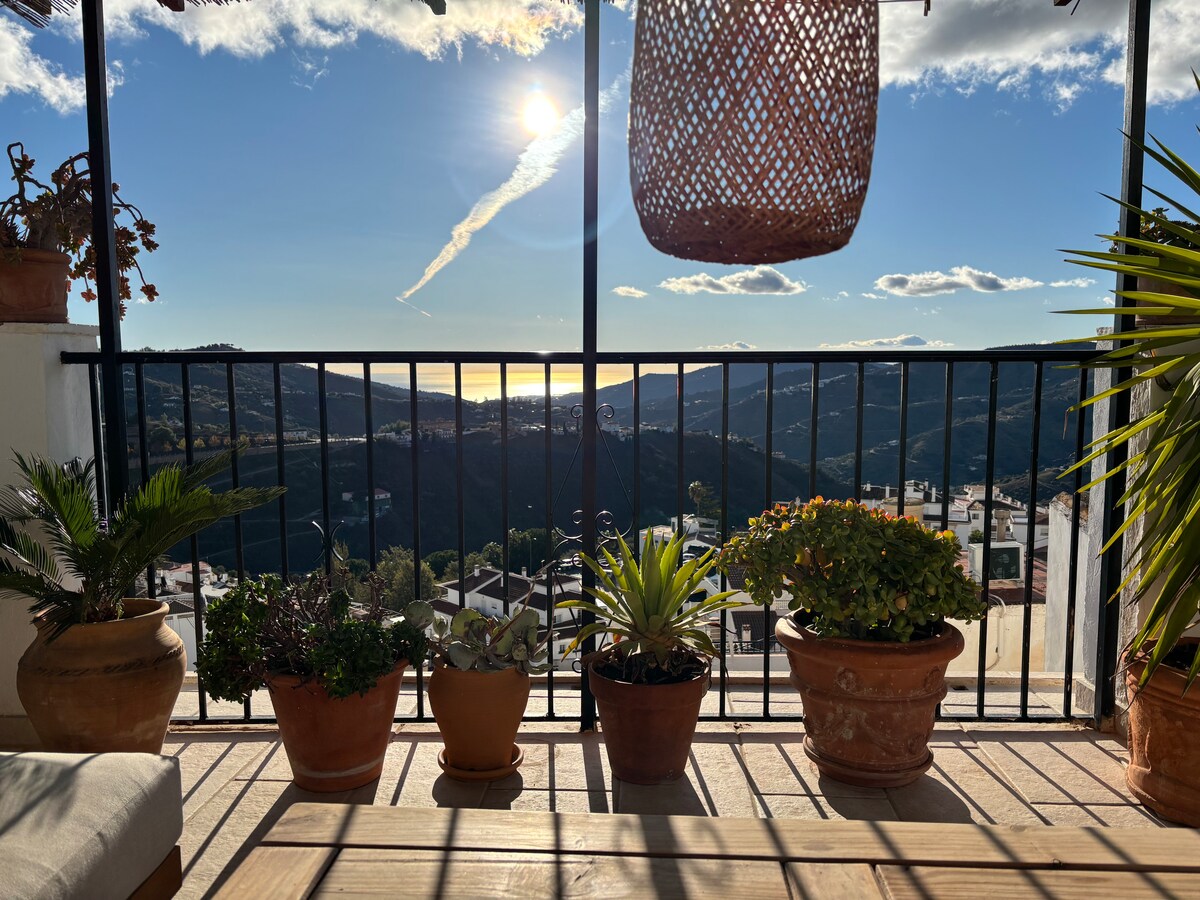 Casa Vida is a charming townhouse in the heart of Cómpeta, just steps from cafés, restaurants, and the village square, yet tucked away on a quiet street. Enjoy the sunny rooftop terrace with stunning views of the mountains and the Mediterranean Sea, and unforgettable sunsets all year round. Perfect for couples, families, or friends looking for a relaxed stay in an authentic Andalusian village. Free street parking is available nearby.