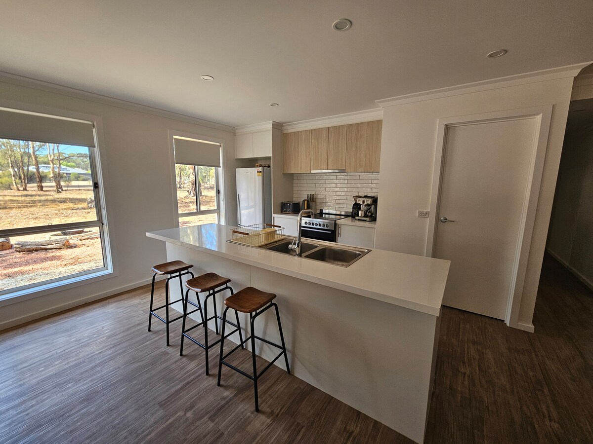 The Grove studio is a fully self contained space separated from our private onsite residence. Set in the majestic rolling granite hills of Harcourt North our views will captivate you, from amazing sunsets to star filled skies. A perfectly positioned location between Bendigo, Castlemaine and Maldon, your base to explore the attractions Central Victoria has to offer, including great local wineries & artisan goods. Our area is home to an abundance of nature, from kangaroos to echidnas to wombats.