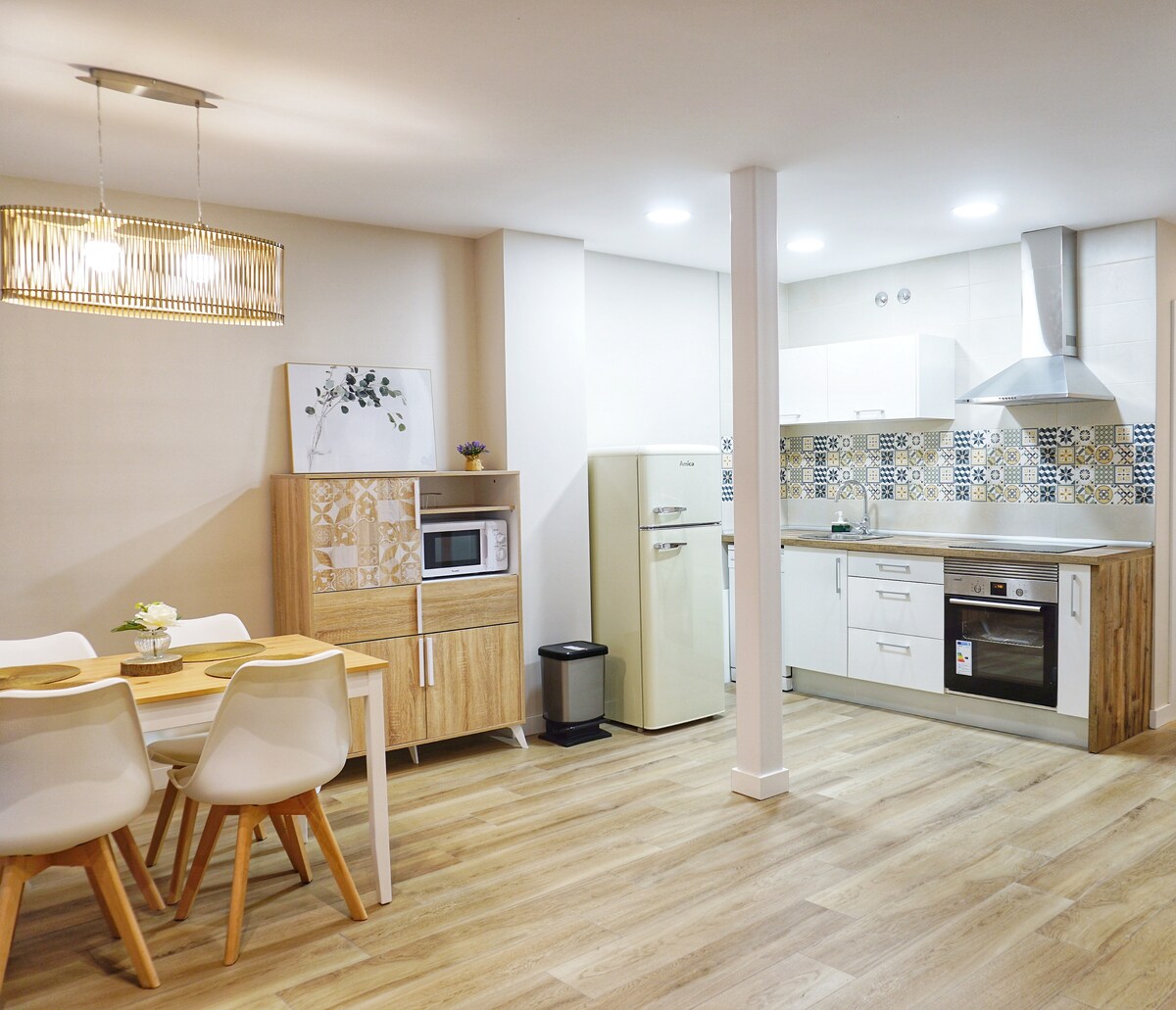 Apartamento nuevo en edificio rehabilitado, en el centro urbano. Este apartamento muy acogedor, se sitúa en planta baja del edificio. Adaptado para personas con movilidad reducida(ancho de puertas 81 cm.).Consta de amplio salón con cocina, con todos los electrodomésticos y menaje de cocina, sofá cama, Smart tv de 40 " . Baño también adaptado para movilidad reducida. Consta de dos dormitorios, uno de ellos con cama de matrimonio y el otro con dos camas individuales. Wifi.