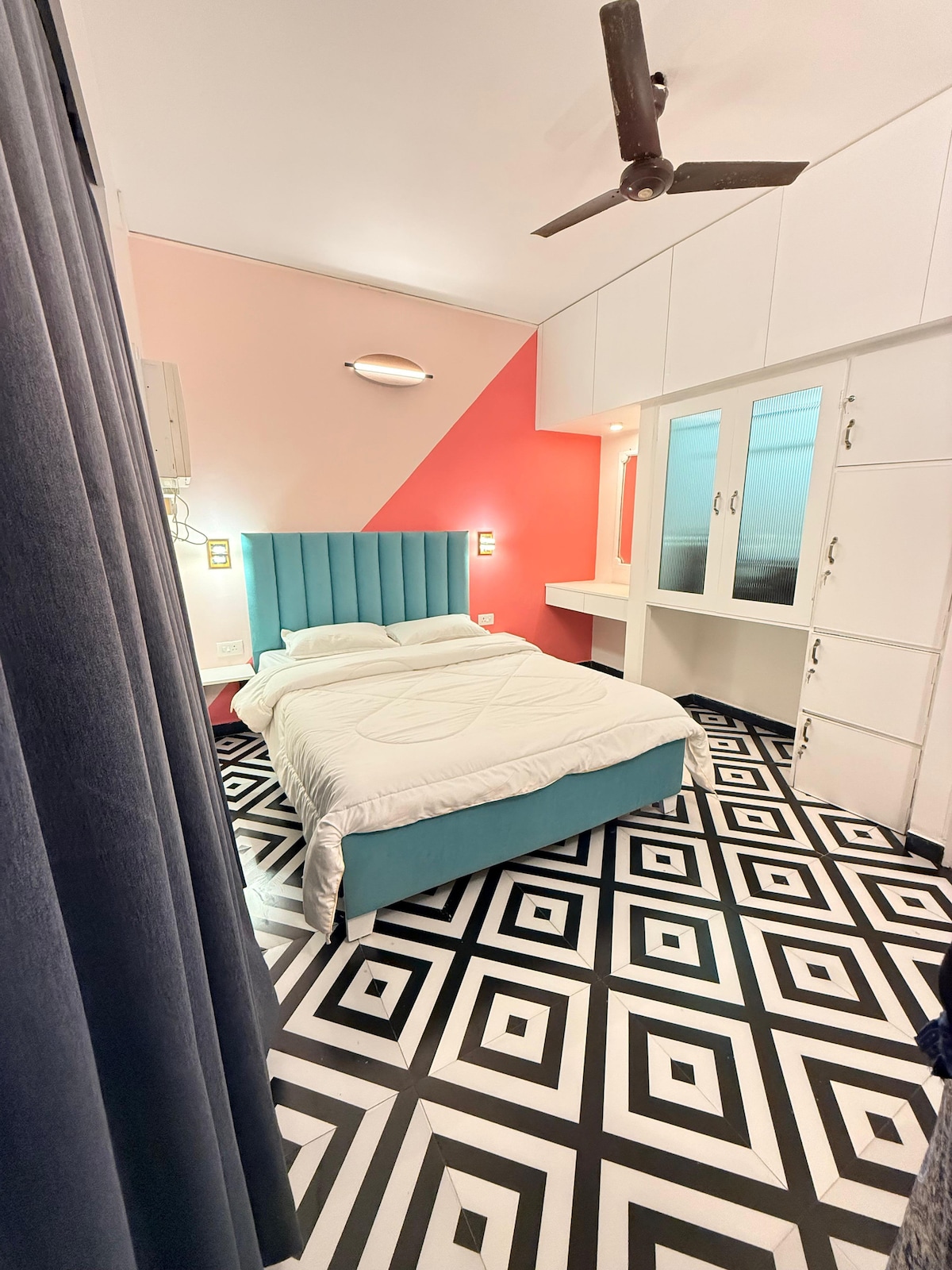 Moroccan Suite Calangute Beach Vibe is a 650 Sq ft (61 Sqmtrs) 1BHK King Bed with private balcony, Moroccan Lighting, Artifacts in the room (Handle with Care) fully equipped kitchen, 5 minutes (walk) from the beach opp apt, 10 mins away to the main Calangute beach (Car), 12 mins to Baga Beach (Car), 7 Mins Fort Aguada, Candolim Sinq Beach, Nightlife, Shopping stone throw away, Care Taker On Call till 10pm, Pro Active Host just. Families and Couples seeking privacy only, strictly no bachelors.
