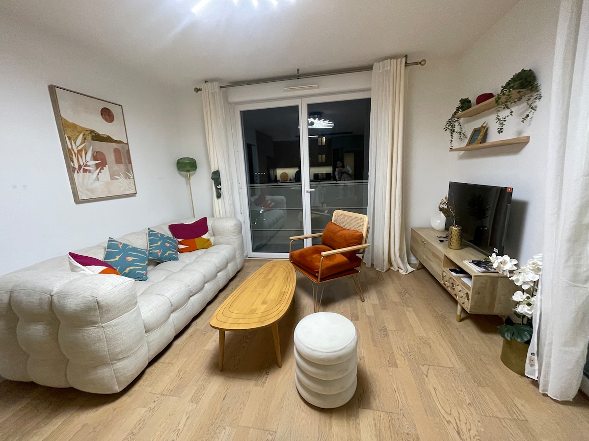 Recent secure residence with private parking in the basement Located on the 1st floor with elevator access Shops nearby (Auchan, Bakery) 8 min walk to "Serge Gainsbourg" station of metro L11, Chatelet in 18 min Includes a bathroom with toilet, shower, sink, heating, bath towels Living room with coffee table, TV, Wi-Fi, closets Large table with 4 chairs Foldaway bed ensuring ample space during the day Small kitchen with microwave, kettle, capsule coffee maker
