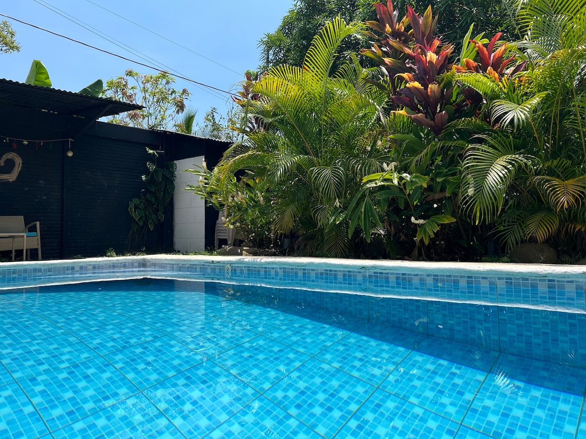 Welcome to The Lost Lemon 🌿 Your peaceful jungle escape awaits. This charming 2-bedroom home with A/C is conveniently located in the middle of Playa Hermosa, complete with a private pool for total relaxation. Stroll 20 minutes to the beach or stay in and enjoy the tranquility of lemon trees, bananas, pineapples, and lush greenery. Enhance your stay with yoga or a soothing massage, or simply lounge poolside and let the jungle calm your soul.