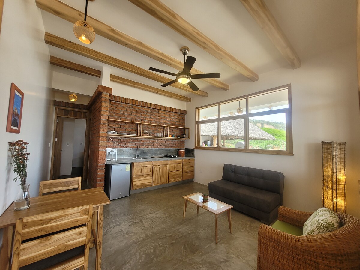 This beautiful suite is located right in front of the ocean with direct access to the beach and a swimming pool. Whether in your suite, in the pool, or on the beach you will hear the relaxing sound of ocean waves and enjoy magnificent sunsets. The property is located in a quiet area, a 30 minute walk, or 5 minute car ride to Canoa. Our English and Spanish speaking on-site caretaker is here to help you with any questions about the property or the area.