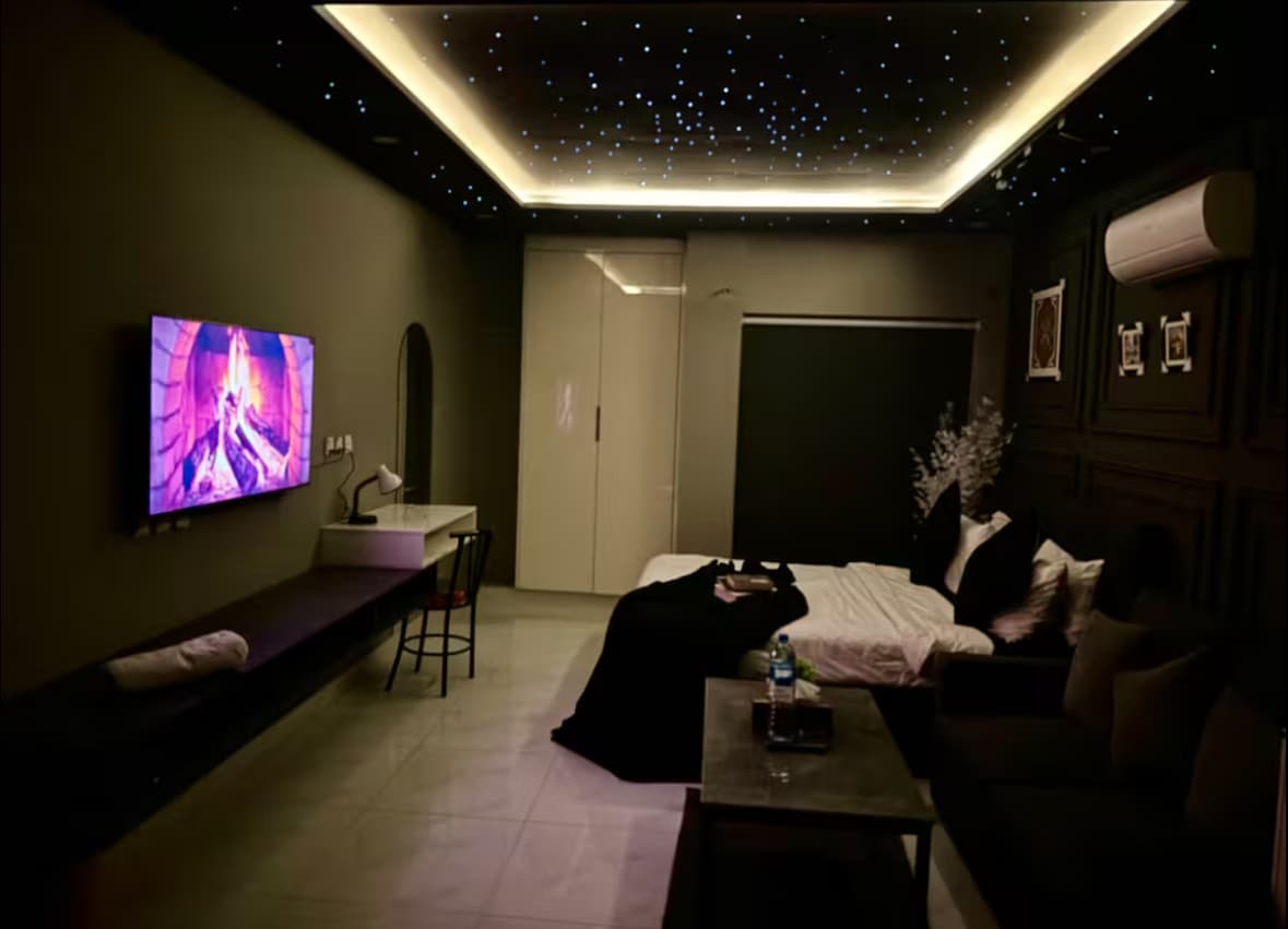 Luxury Dark-themed 1BHK Starlit lounge Lahore