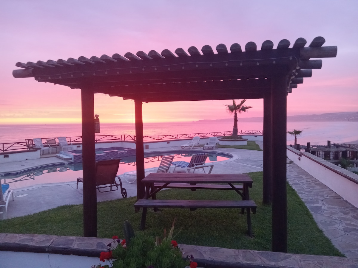 Welcome to your new favorite place to stay in Ensenada. This newly remodeled unit features mesmerizing ocean view with front row seats to an unforgettable sunset. Fully furnished unit with open space to enjoy the symphony of waves throughout the unit. We are Located within a private family owned gated community with a cafe (Cafe Toya) and restaurant (Ophelia) in the premises. Driving distance to Valle de Guadalupe is 20 minutes and Downtown Ensenada is 6 minutes.