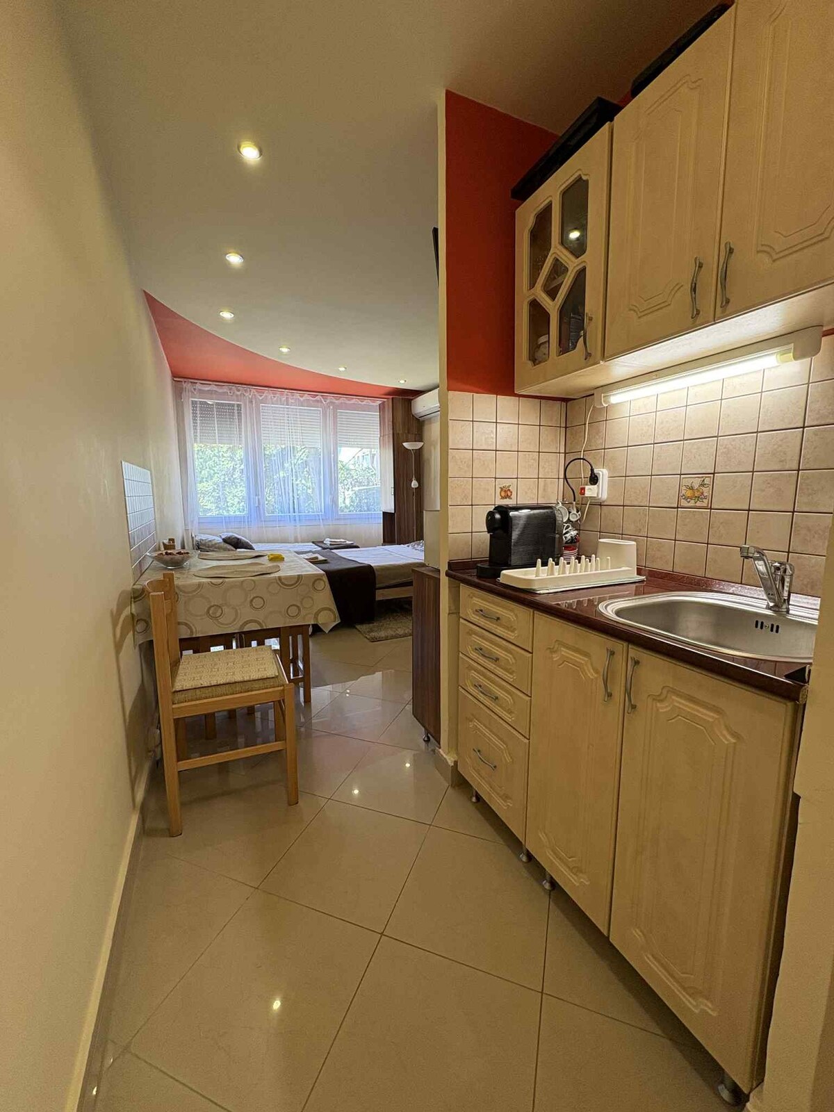 Recharge in this comfortable little studio with a courtyard parking, located in a quiet, newly built apartment house close to the beach and nightlife. Ideal accommodation for couples, or even lonely retreats in winter and summer. 160cm wide comfortable, bonell spring French bed, equipped kitchen, shower-bidet bath, with a quiet, private balcony overlooking the inner courtyard, closed, courtyard parking for guests.
