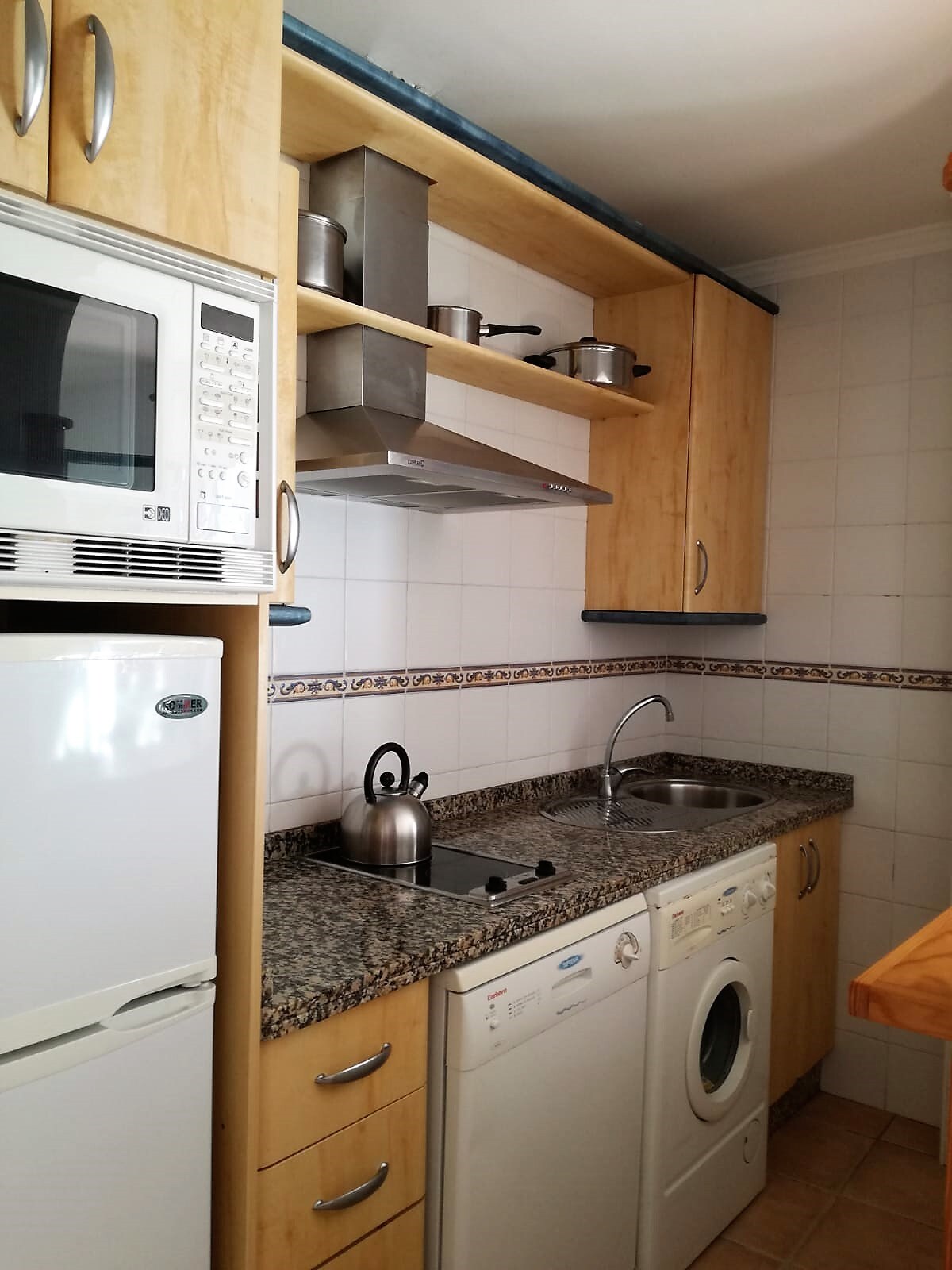 1 bedroom apartment with an enormous terrace facing the sea. It is equipped with everything you may need to make feel confortable. Brand new kitchen installed in January 2022, with dishwasher, oven, washing machine, etc. Fully furnished terrace with sunbeds, sofá, dining table and chairs, etc. Very confortable bed and pillows.
