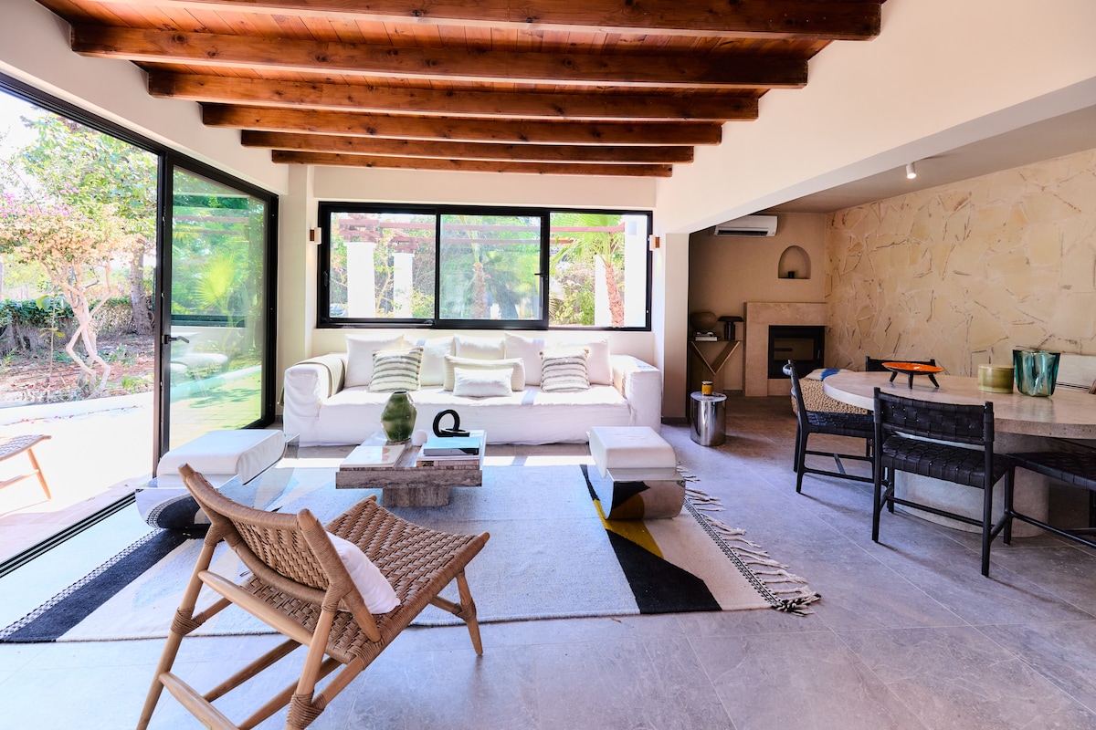 Formentera, enjoy its tranquility and bohemian atmosphere. Get away from the routine at this unique and relaxing stay in Es Pujols. Es Pujols Beach is just a 5-minute walk from the house, where its waters take on all shades of blue to turquoise contrasting with the white sand and green vegetation. Just a two-minute walk away you will find the town of Es Pujols, the island's largest leisure destination.