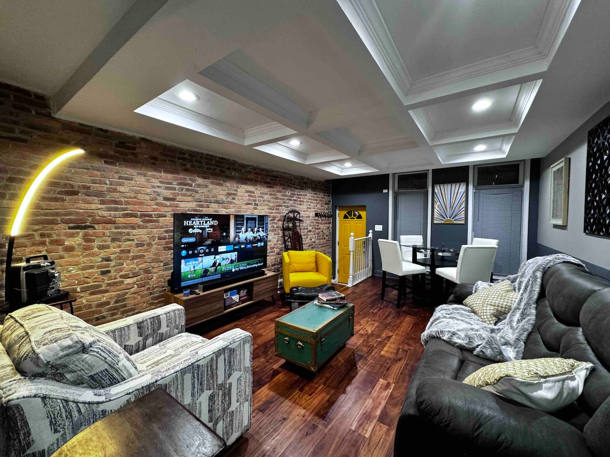 Step into your charming 3-bedroom row home, nestled in the heart of Fells Point! Explore the charming cobblestone streets, discover unique shops, indulge in delicious cuisines, or enjoy a lively night out. Located just one block from the waterfront, our home offers easy access to Baltimore's top attractions, including Inner Harbor and Harbor East. With accommodation for up to 8 guests, enjoy our comfortable furnishings, fully-equipped kitchen, and large outdoor space with firepit and grill.