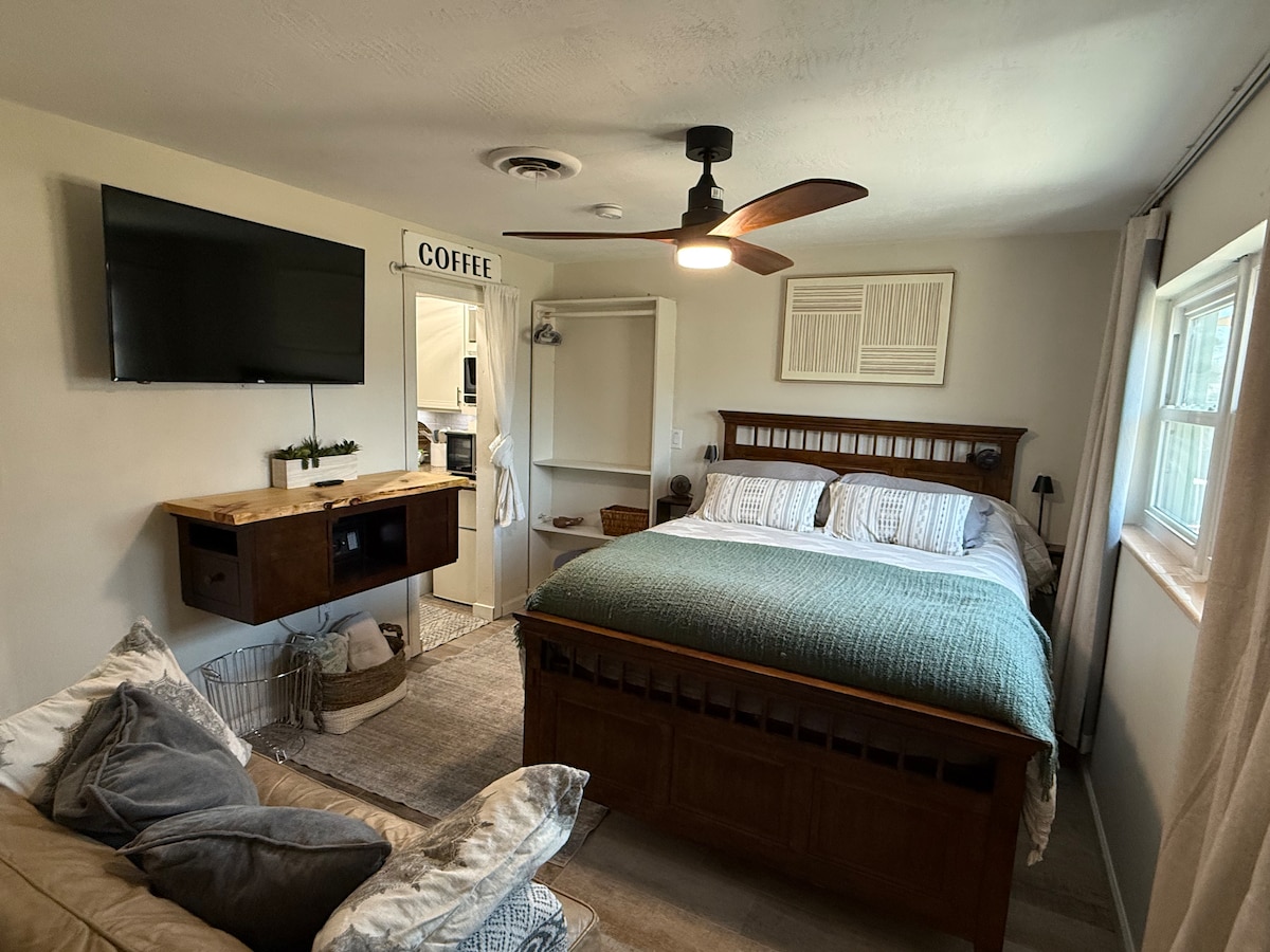 Our cozy one-bedroom suite, located in the heart of Merritt Island, features a comfortable bedroom, full bathroom, and a kitchenette equipped with a mini-fridge, microwave, and toaster oven—perfect for light meals or snacks. Situated just minutes from delicious dining options and vibrant local bars, this suite is a fantastic base to explore all that Brevard has to offer. Only a 10-minute drive to Port Canaveral, it’s an ideal spot for cruise travelers looking for a pre- or post-voyage retreat!