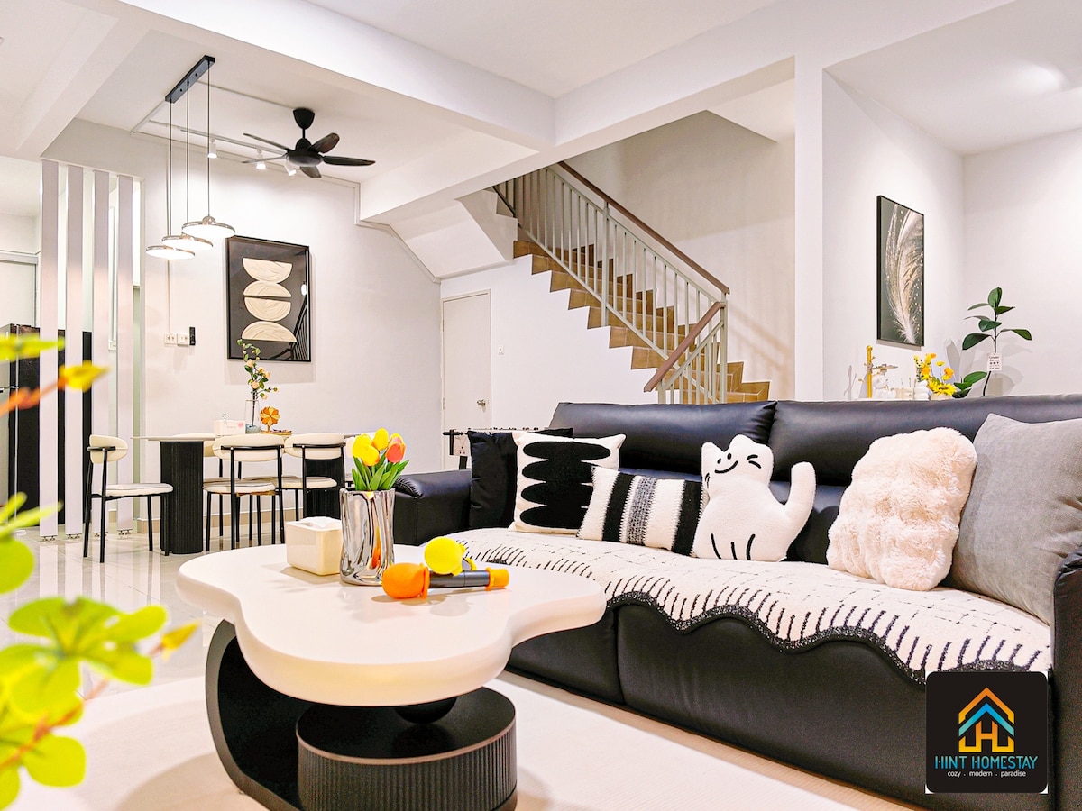 COJY Homestay – Fun Getaway for Friends & Family Bring your squad/ family! Sleeps 12 by default (extra mattresses for groups over 10, max 14) and only 8 mins to Tanjung Balau. Conveniently near grocery stores, laundry & shops. Enjoy: ☞4 bedrooms, 2 toilets ☞5 Queen beds, 1 sofa bed ☞Baby cot, chair & tub available ☞Car porch fits 2 cars ☞KTV & Netflix for movie & sing-alongs ☞Mahjong, Poker & Retro Game Console for game nights Cozy, fun, and perfect for laughs and unforgettable memories!