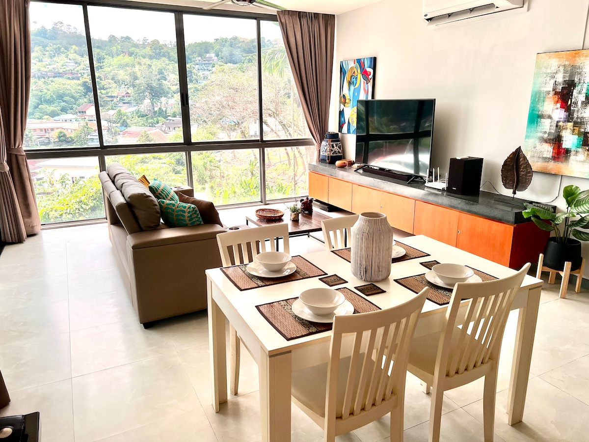 Kick back and relax in this calm, stylish space designed for comfort and luxury. This modern and contemporary condo features a spacious layout with elegant interiors, perfect for a tropical escape. Surrounded by lush greenery, the residence offers a tranquil atmosphere paired with premium services and 5-star facilities—all just a short walk from the stunning Bangtao Beach.